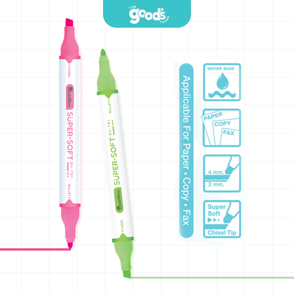 ปากกาเน้นข้อความ Highlighter Quantum QH781 ปากกา ไฮไลท์ ควอนตัม 2 หัว หัวนิ่มพิเศษ (จำนวน 1 ด้าม)