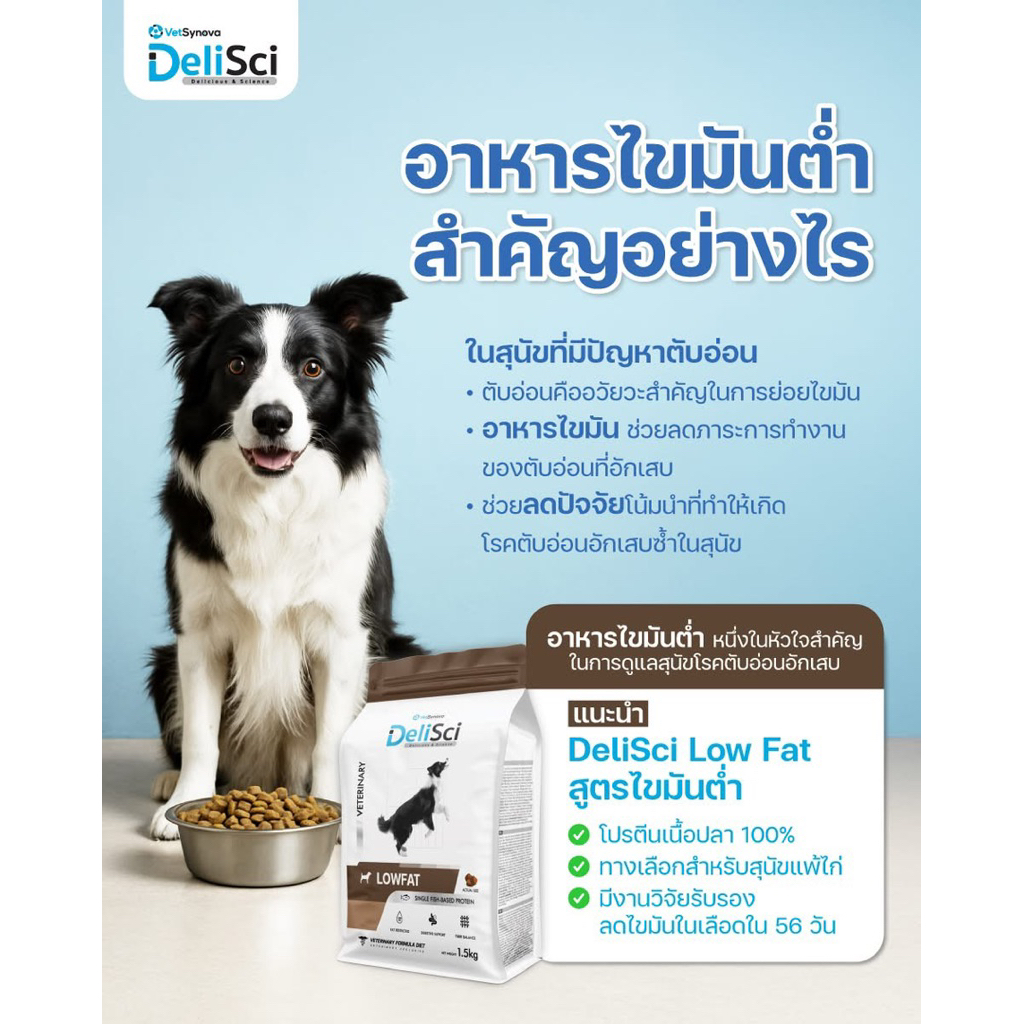 DeliSci Low Fat อาหารสุนัขสูตรไขมันต่ำ ขนาด 450g – 1.5 kg.