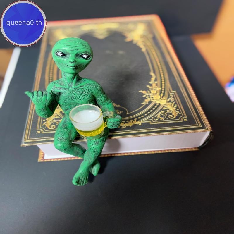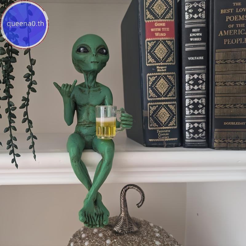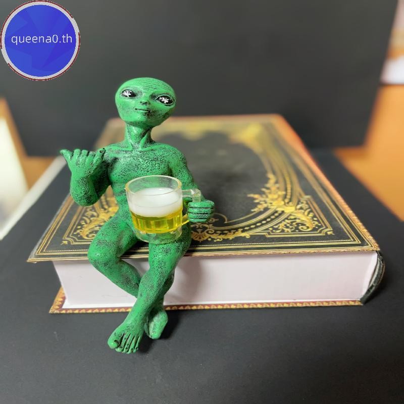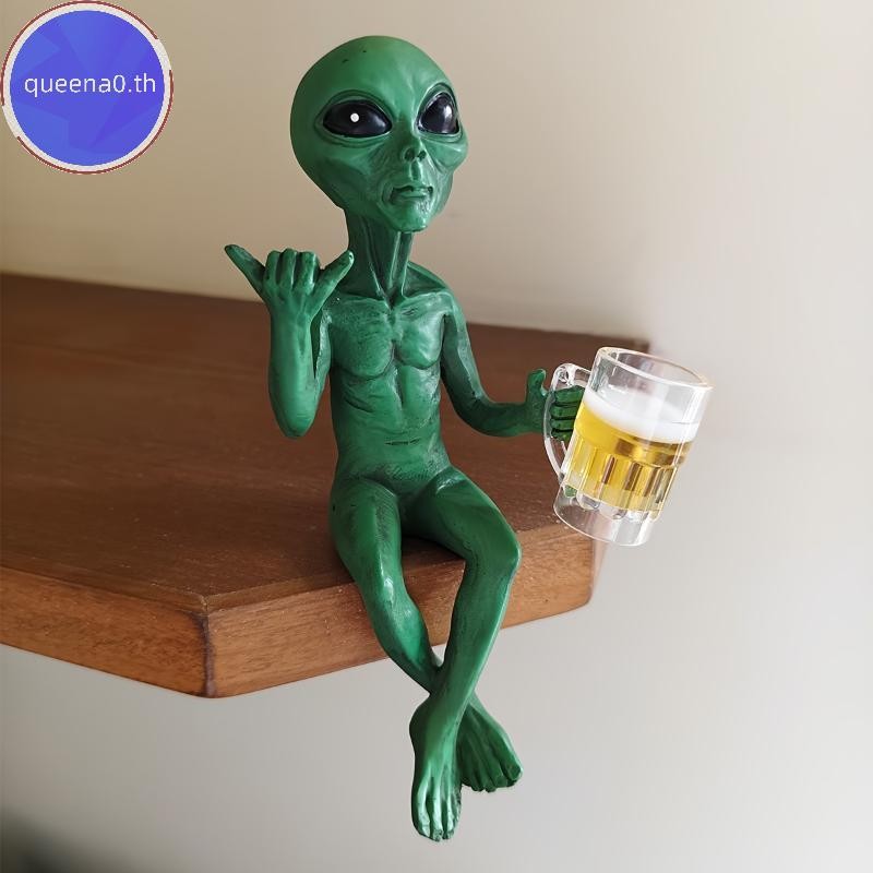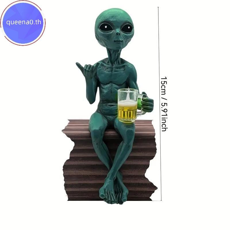 Queena0 ตลกคนต่างด้าวรูปปั้นประติมากรรมสวนภูมิทัศน์ Yard Art เครื่องประดับเรซิ่นเบียร์ดื่ม Alien ประติมากรรมเดสก์ท็อปตกแต่ง th
