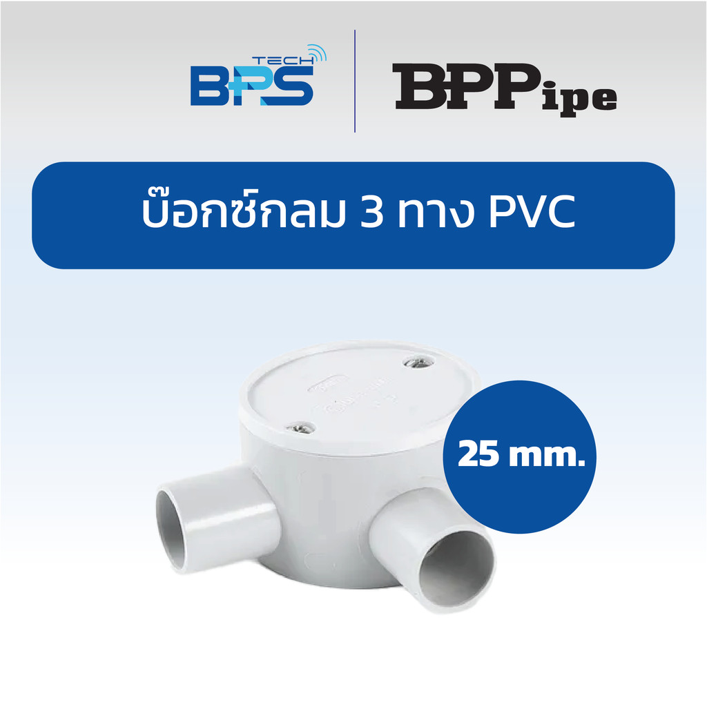 บ๊อกซ์กลม PVC พร้อมฝาปิด ใช้สำหรับเป็นจุดต่อสายไฟภายในระบบท่อร้อยสาย แข็งแรง น้ำหนักเบา ติดตั้งง่าย และช่วยให้ตรวจสอบหรือซ่อมบำรุงได้สะดวก