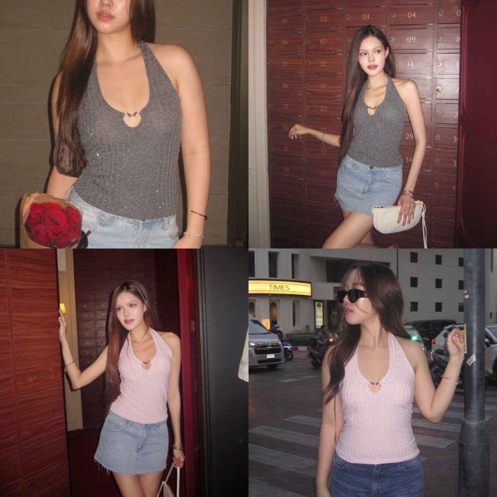 monica top (550.-) เสื้อผูกคอผ้าร่องใหญ่ปักเพชร ดีเทลอะไหล่หัวใจตรงกลางอก? มีความเล่นแสงกำลังดี ใส่แปะจุกหรือปีกนกได้ไม่เห็นตะขอ colors: black and pink size: XS รอบอก 28"-31" รอบเอวไม่เกิน 24" ยาวรวมสาย 20" SM รอบอก 31"-34" รอบเอวไม่เกิน 27" ยาวรวมสาย 2