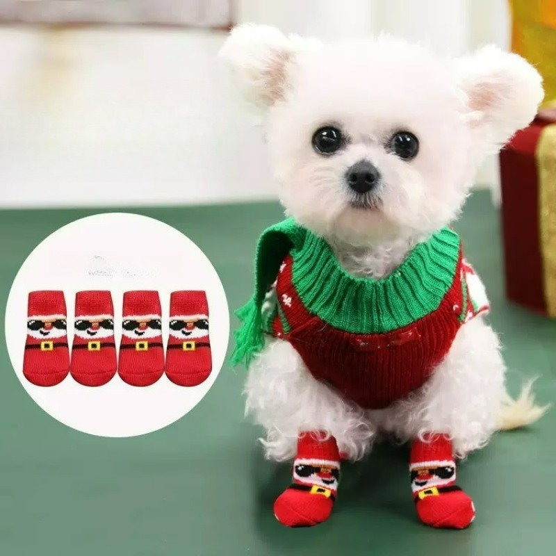ชุดถุงเท้ากันลื่นสำหรับสุนัข 4 ชิ้น เหมาะสำหรับสุนัขขนาดกลางและใหญ่ มีคุณสมบัติกันลื่นสองด้าน สะท้อนแสงตอนกลางคืน รองเท้าและถุงเท้าสำหรับสุนัขพันธุ์โกลเด้นรีทรีฟเวอร์ กันลื่นเงียบ