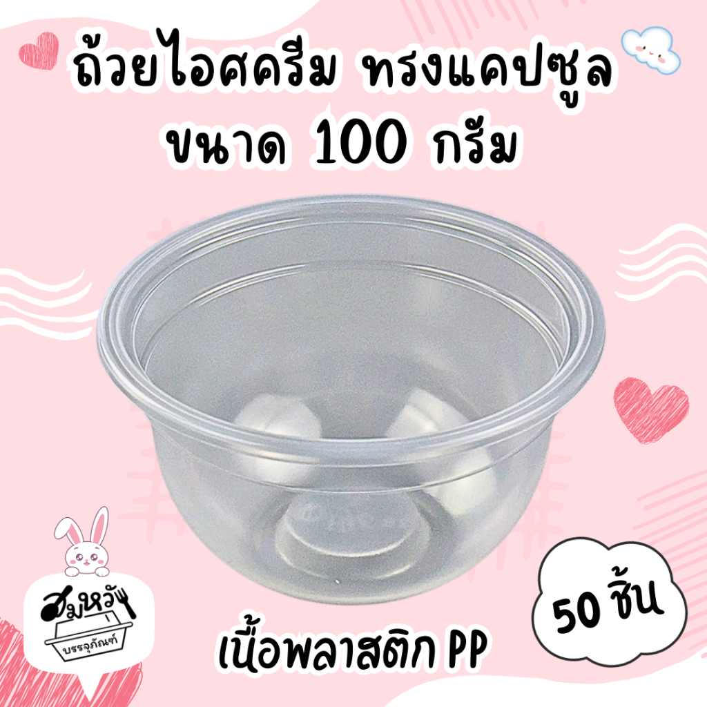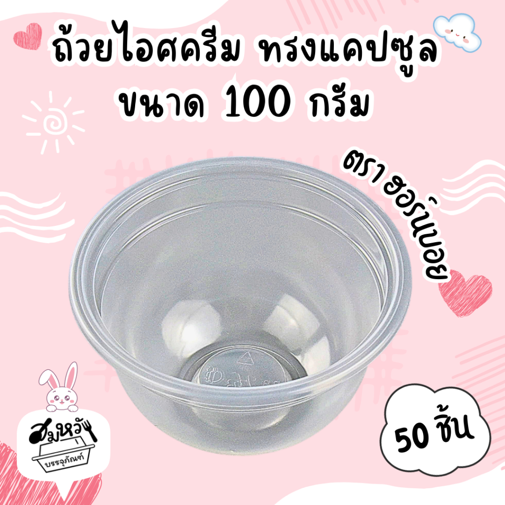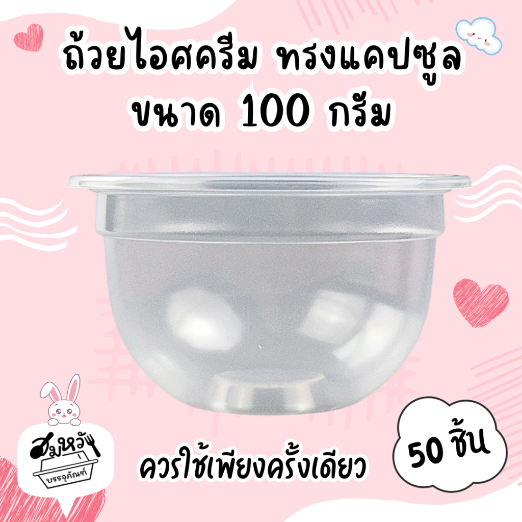 ? ถ้วยไอศครีมใส ทรงแคปซูล ขนาด 100 ตรา HB (50ชิ้น