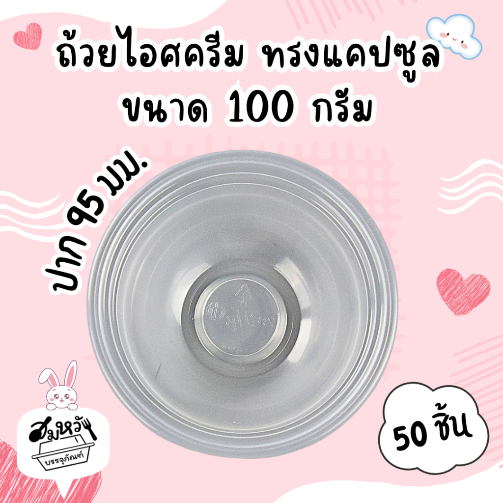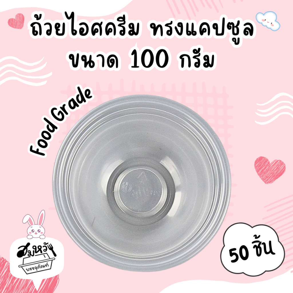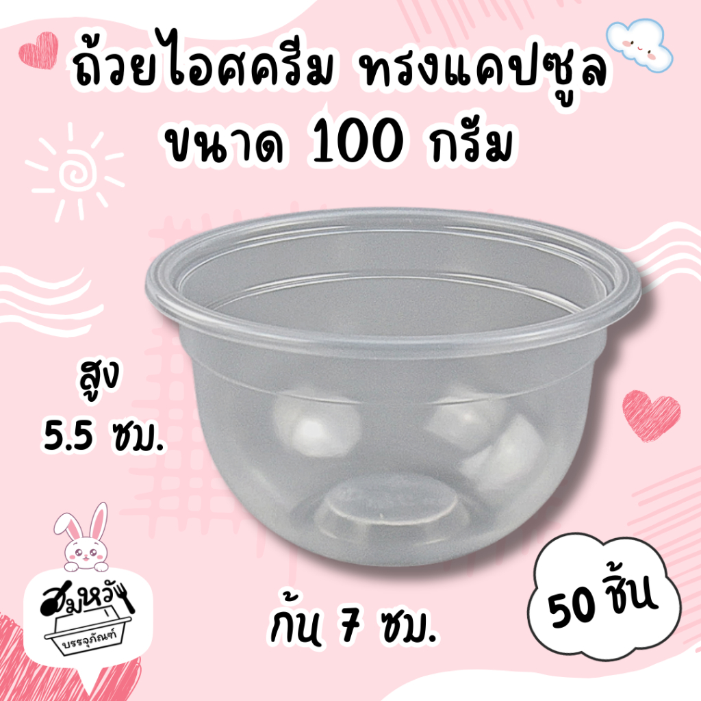 ? ถ้วยไอศครีมใส ทรงแคปซูล ขนาด 100 ตรา HB (50ชิ้น