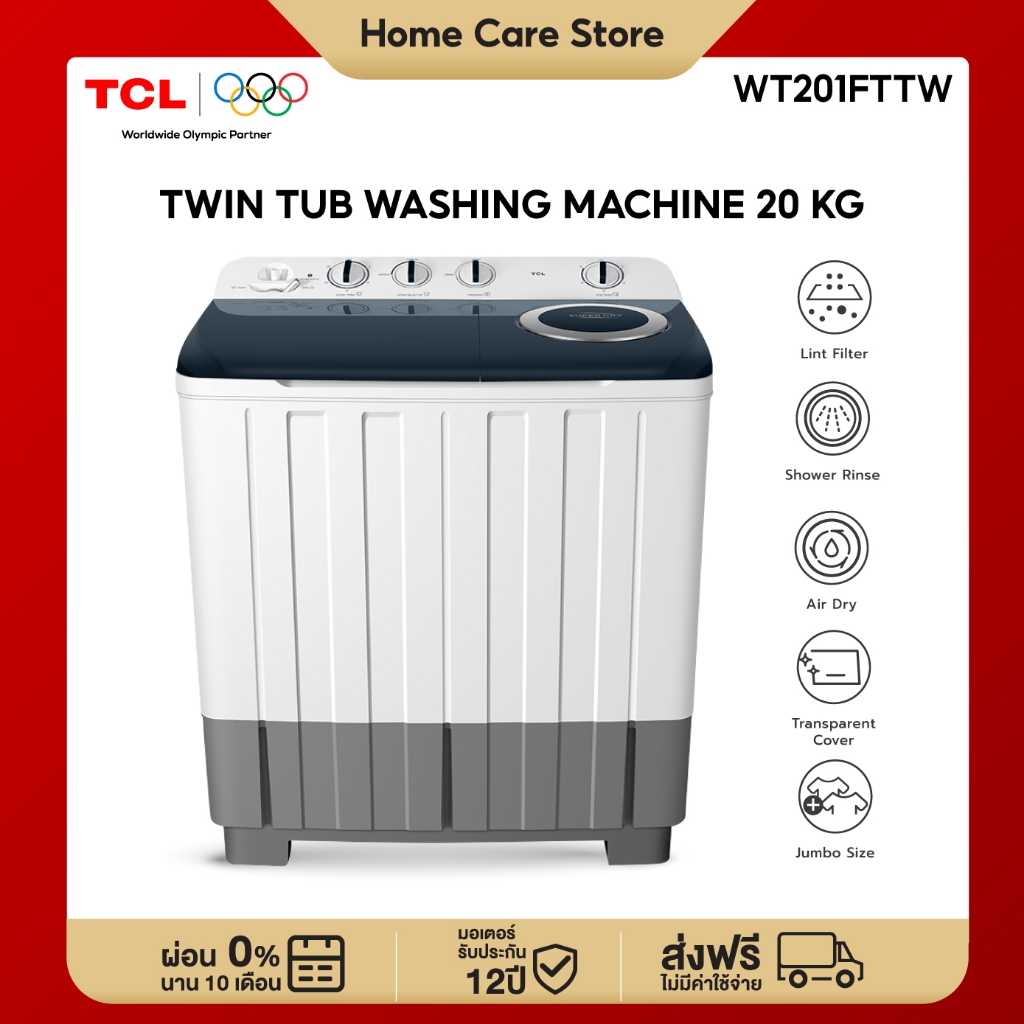 TCL เครื่องซักผ้า 2 ถัง Twin Tub ขนาด 20 กิโลกรัม พร้อมด้วยถังปั่นหมาดระบบ Air Dry รุ่น WT201FTTW