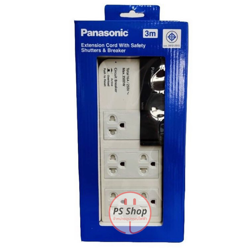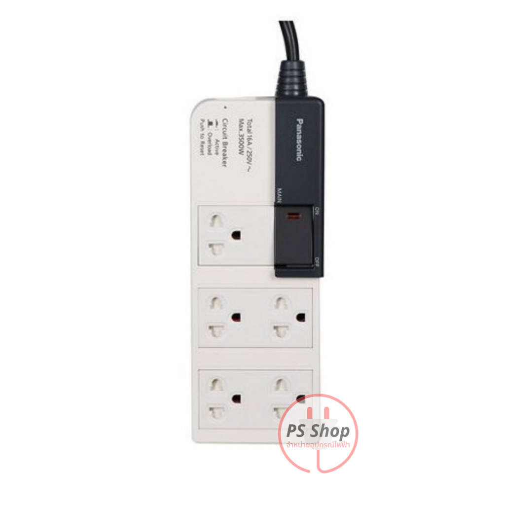 [สินค้ามีในสต๊อกพร้อมส่งค่ะ] [สินค้ารับประกันบริษัท 1ปี] PANASONIC ® พานาโซนิค ปลั๊กไฟ ปลั๊กพ่วง ปลั๊ก3ตา รุ่นใหญ่มีสวิตซ์คุม 16A 3500วัตต์ ผลิตตามมาตราฐานมอก. และ IEC ******รุ่นใหญ่ 16A รองรับกำลังไฟสูงสุด 3500วัตต์******** เหมาะมากสำหรับกะทะไฟฟ้า!!!!
