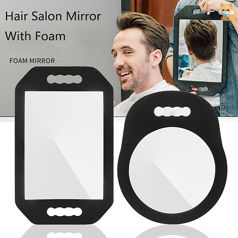 [VI] กระจกทําผมแบบมือถือโฟมโฟมกระจกทําผมทรงสี่เหลี่ยมทรงกลม TH