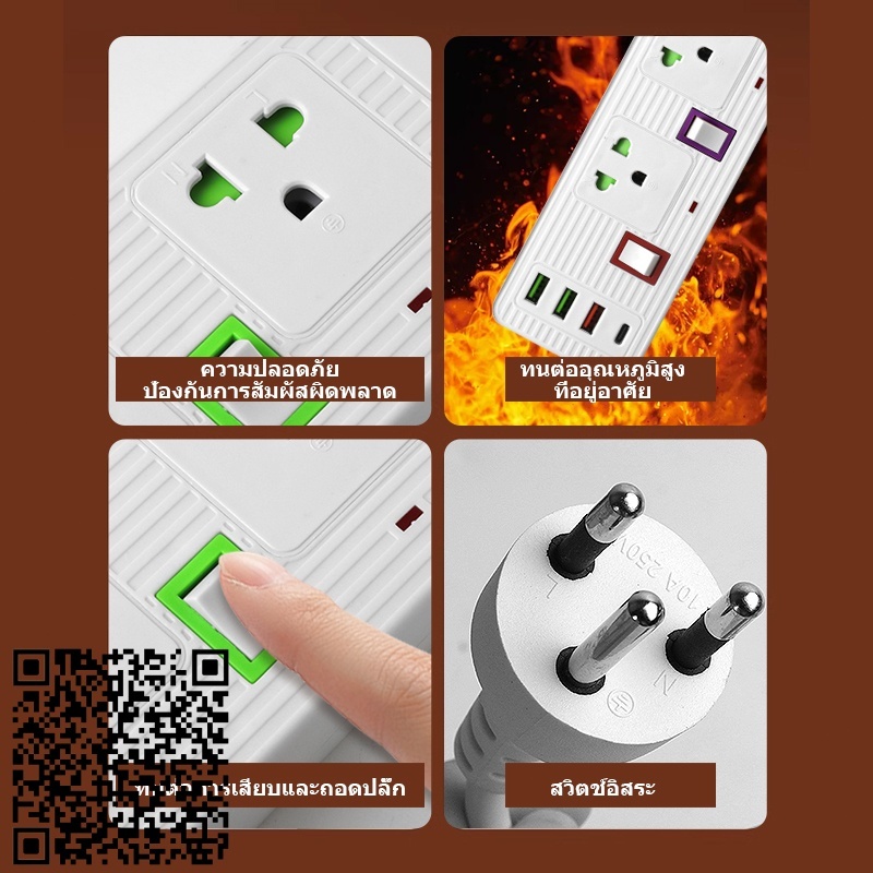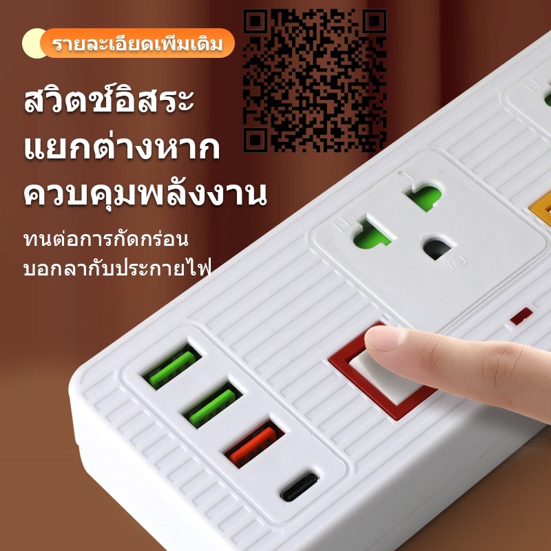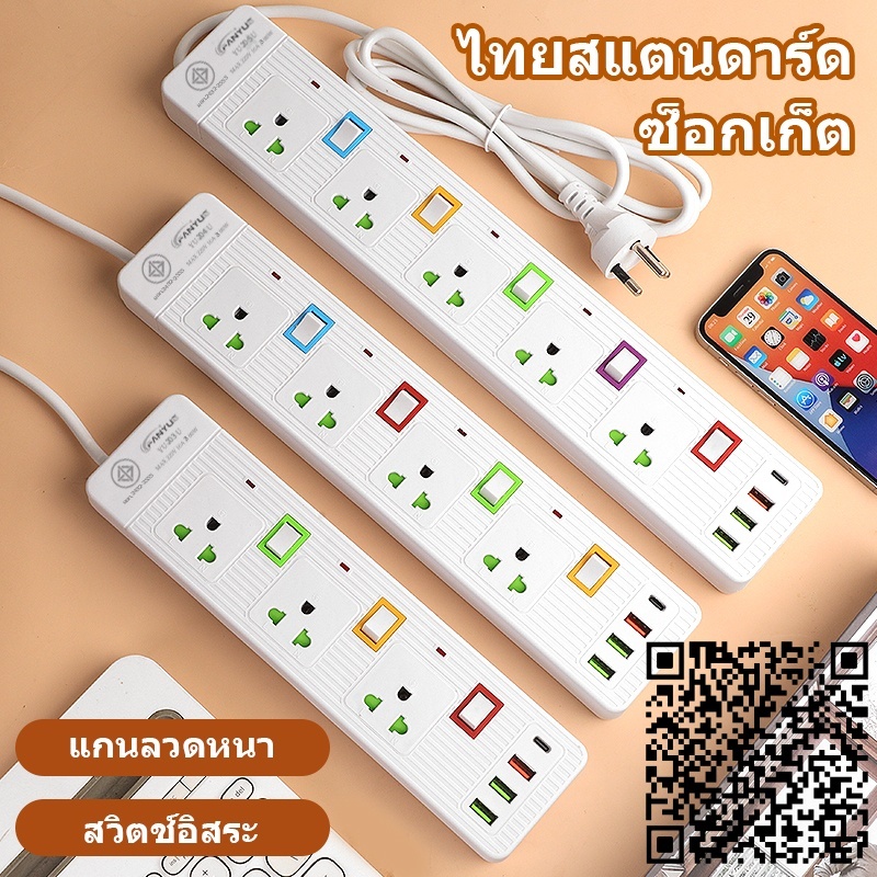 ปลั๊กต่อได้ 3/4/5ช่อง+USB3ช่อง แบบ+1Type-C (220 V)