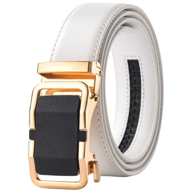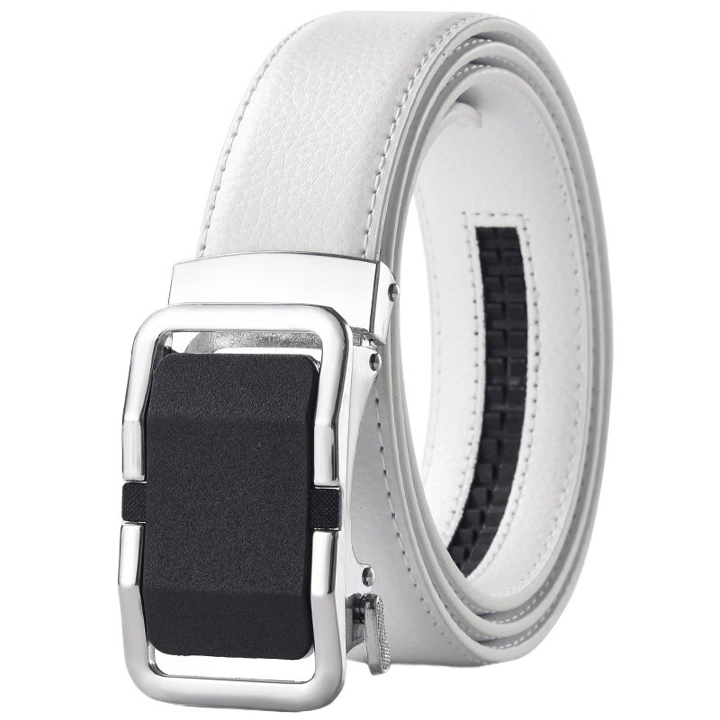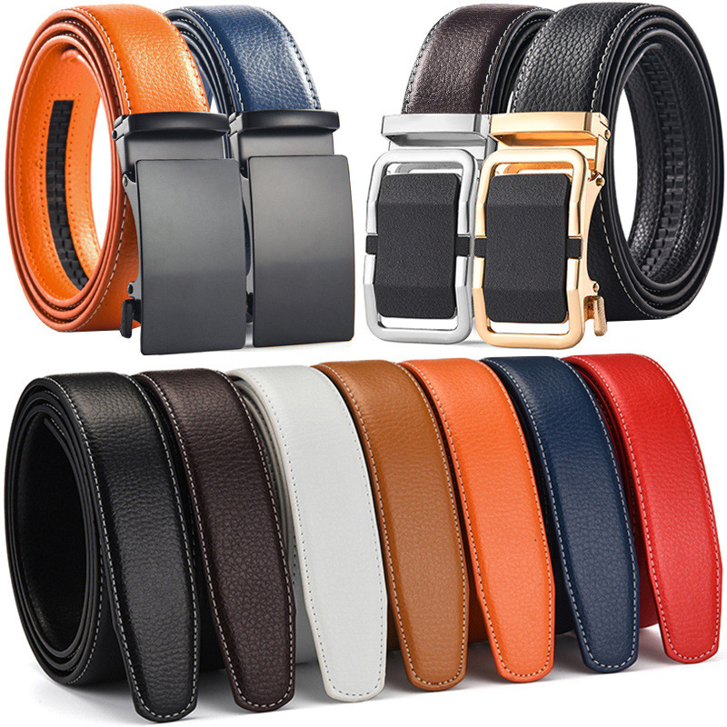 สีขาว/สีน้ําตาล/สีฟ้าผู้ชายผู้หญิงเข็มขัดหนังหัวเข็มขัดอัตโนมัติกว้างผู้ชายสายรัดเอวสําหรับกางเกงยีนส์