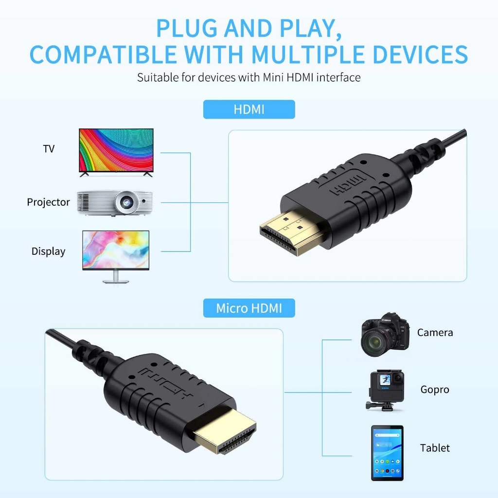 FEELWORLD Ultra Thin 4K HDMI Cable 2.5mm Slim HDMI 2.0 สายอ่อนสำหรับงานวีดีโอ