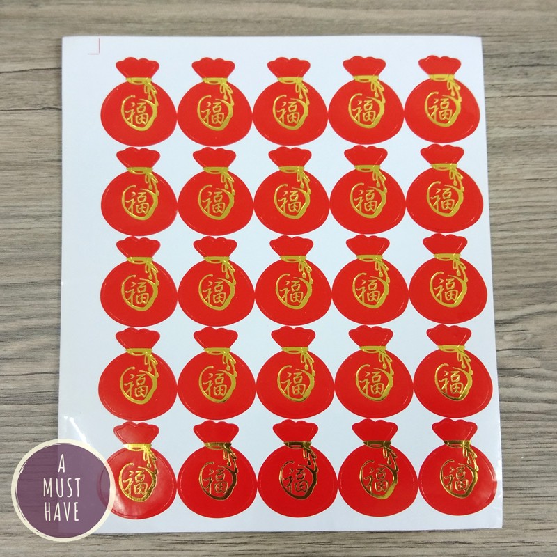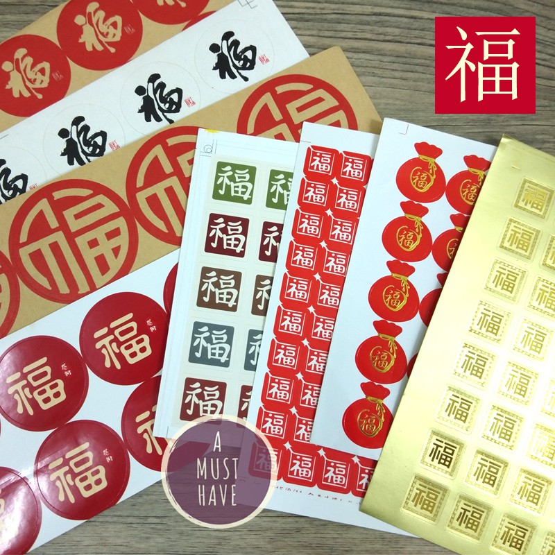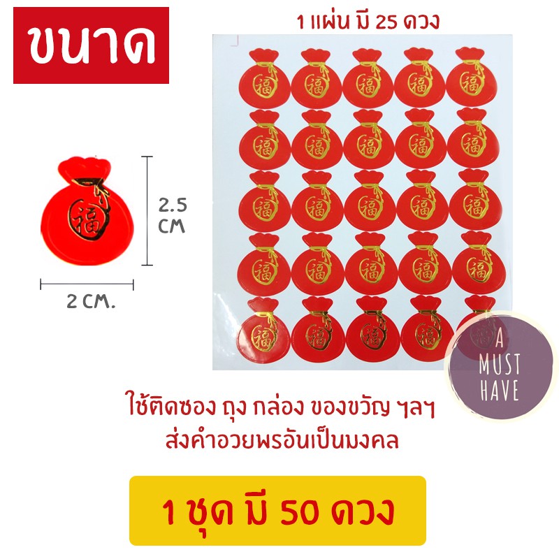 aMustHave สติ๊กเกอร์อักษรจีนฝู / ฮก 福 คำอวยพรมงคล ส่งความสุขให้ผู้รับ 1ชุด50ดวง