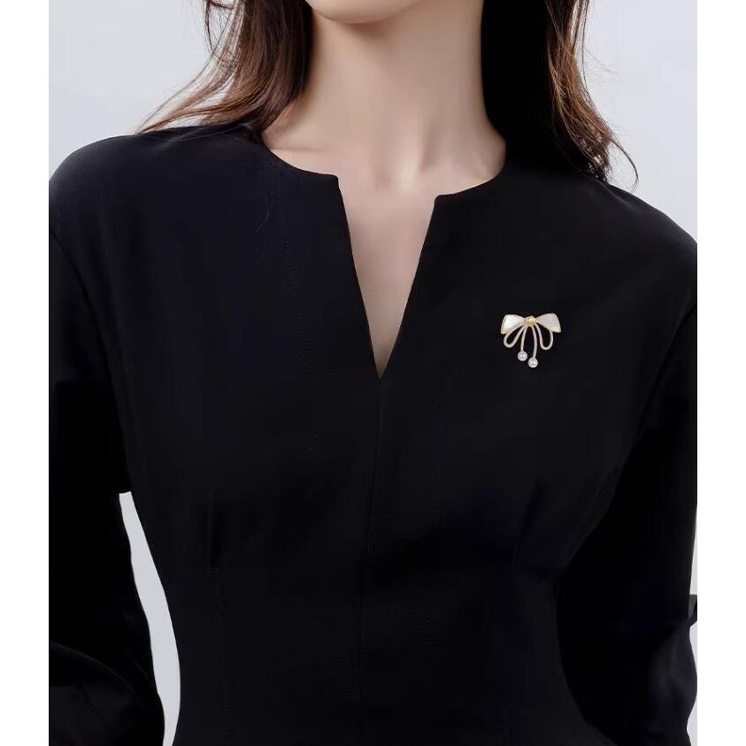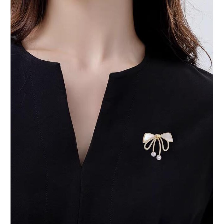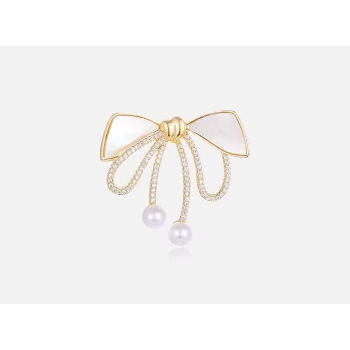 เข็มกลัดมุกโบว์ระดับไฮเอนด์เข็มกลัดหญิงกระพริบอุปกรณ์เพชรหัวเข็มขัดขาเสื้อผ้าคงที่ขา