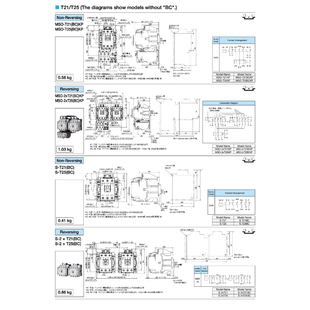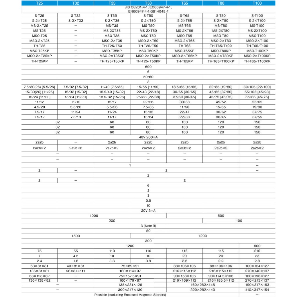 Mitsubishi คอนแทกเตอร์ S-T25 30A 15kW 20HP 2NO + 2NC 24V – 380V AC Contactors