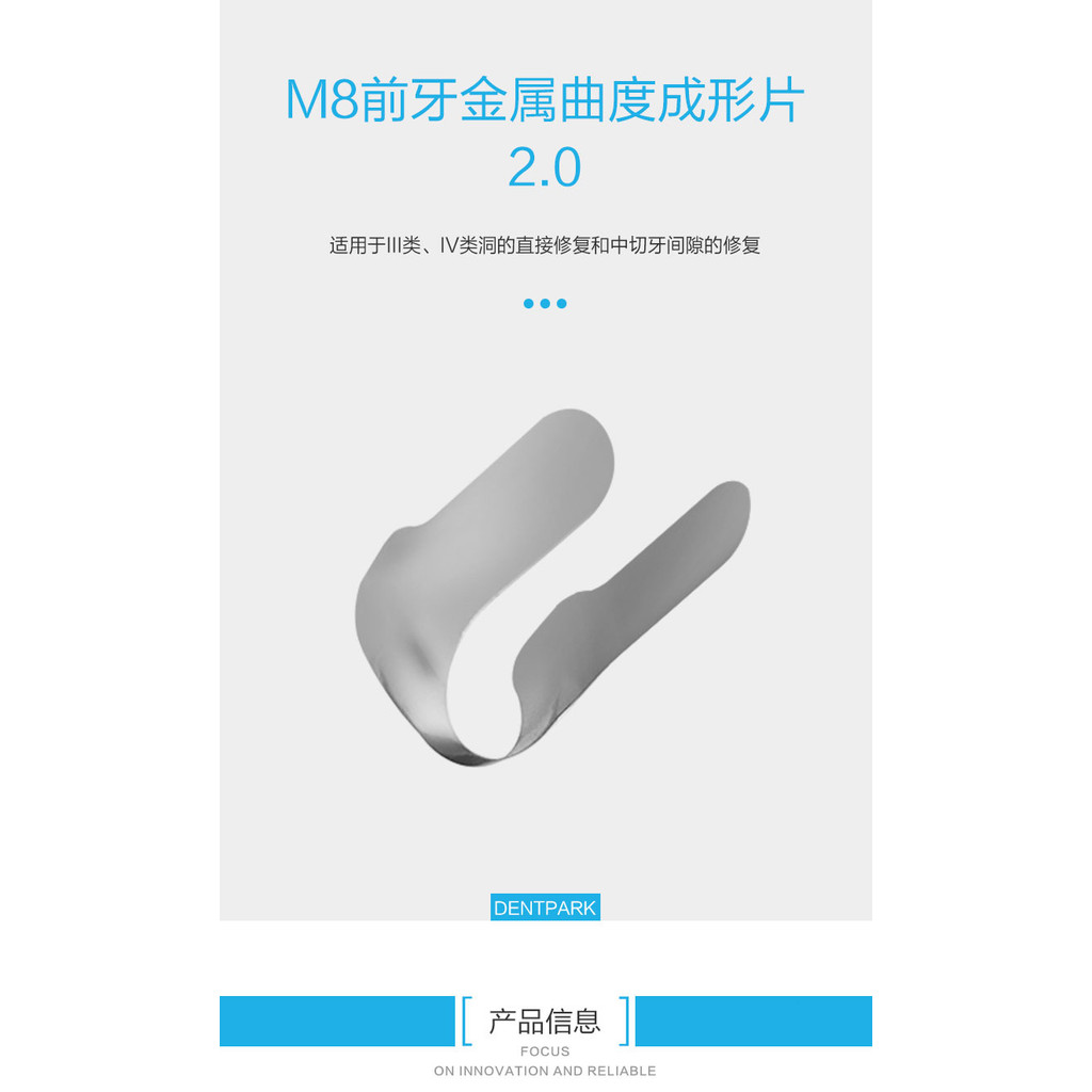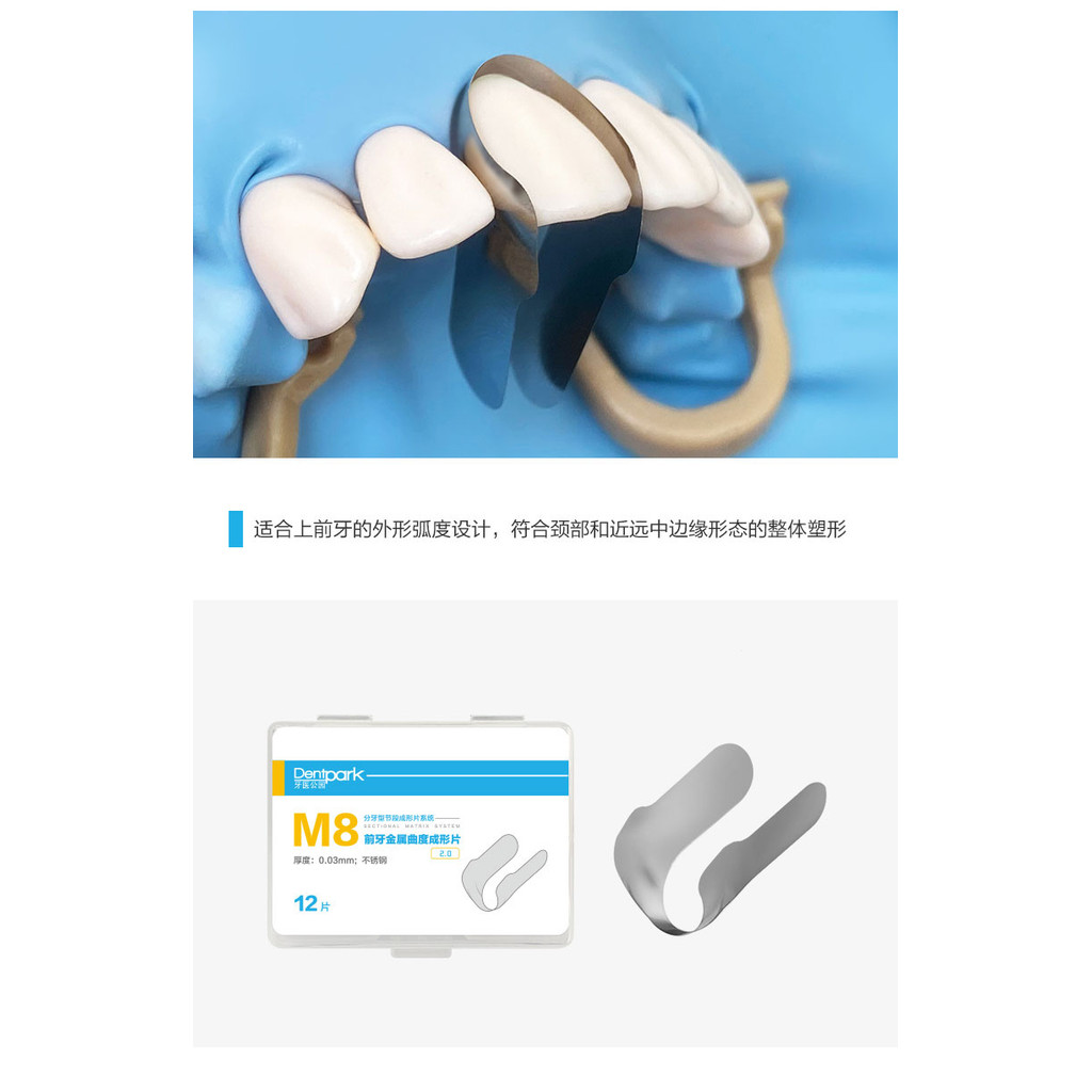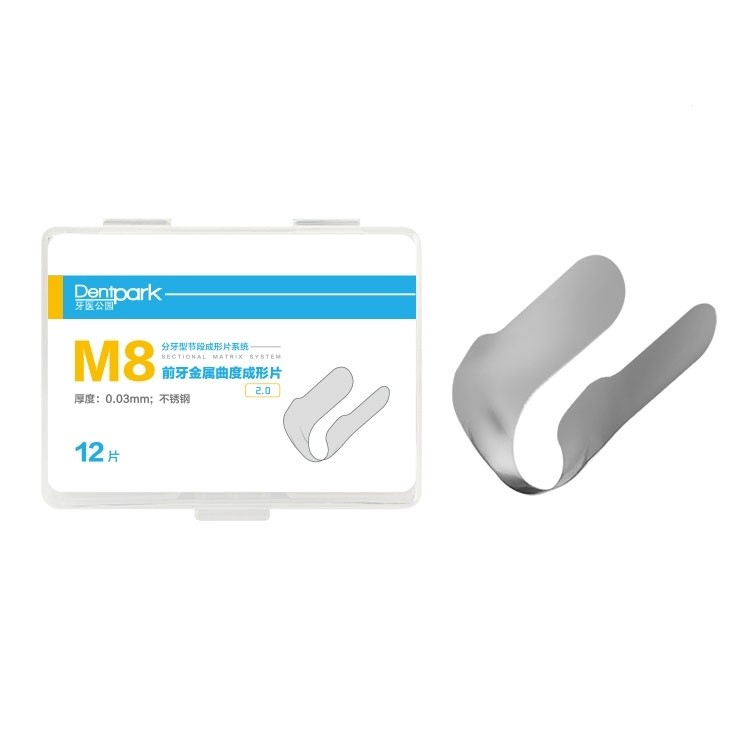 12 ชิ้น/กล่อง Anterior ฟันสแตนเลส Curvature Forming ฟิล์ม 0.03 มม.ความหนา M8 ระบบ 2.0