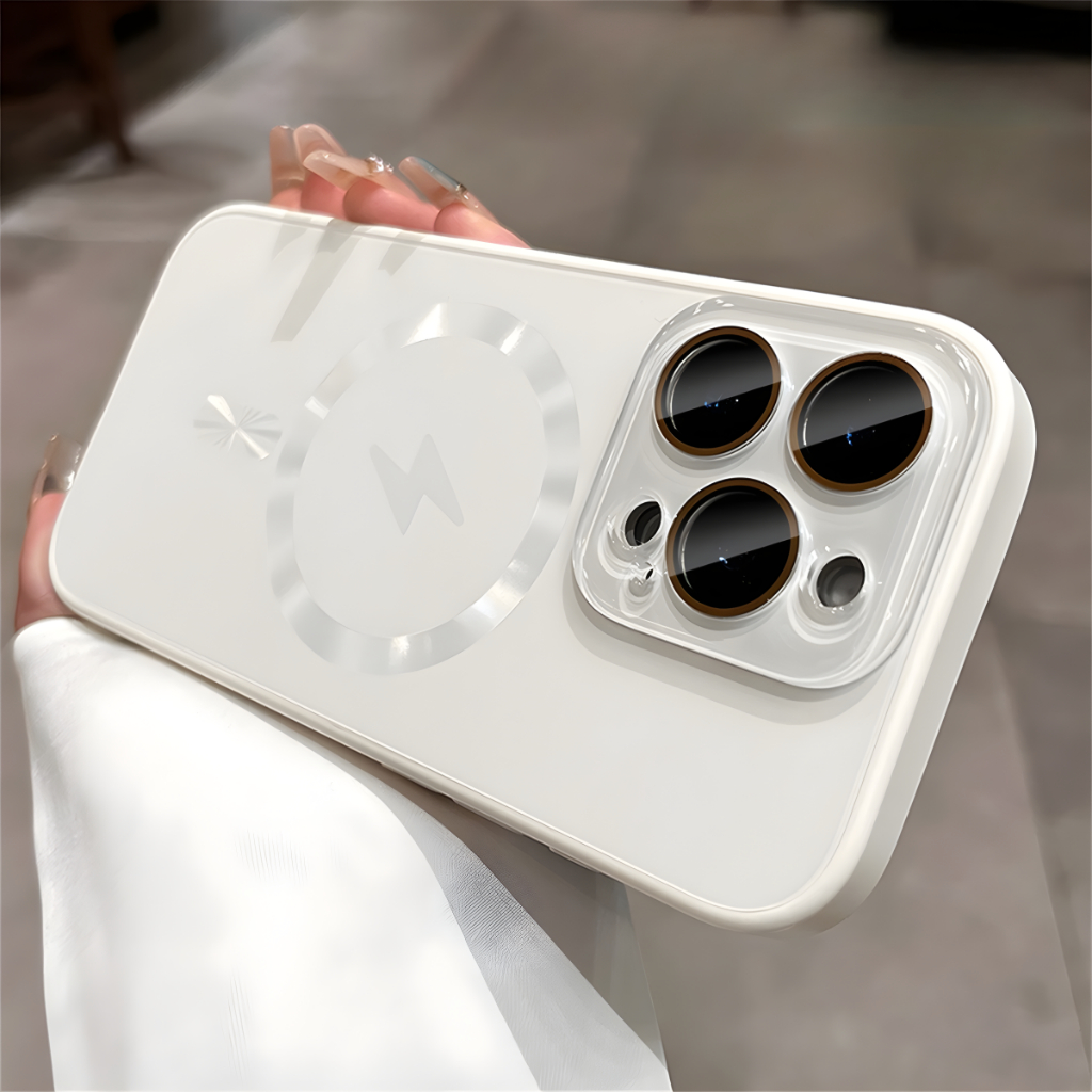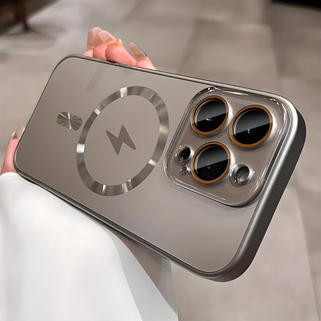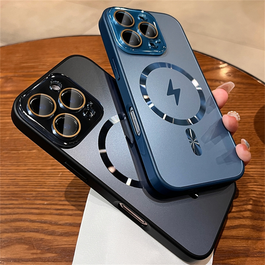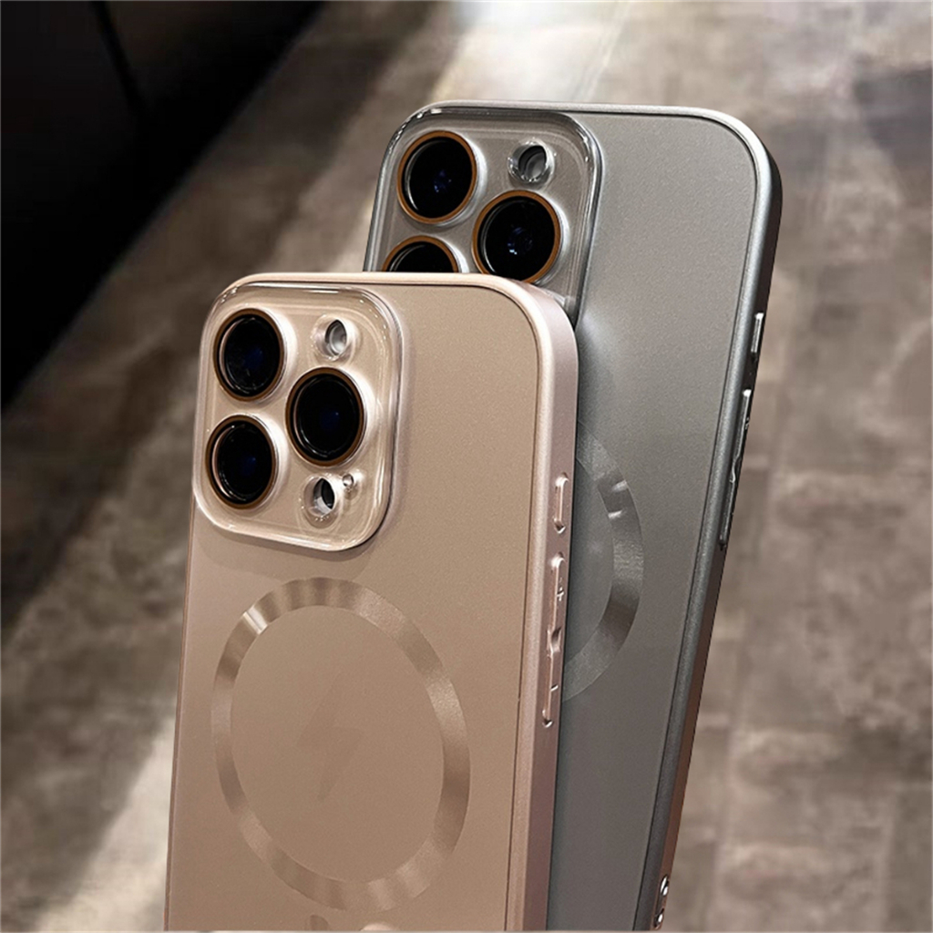 ปลอกแฟลชแม่เหล็กชาร์จ Matte เคสโทรศัพท์พร้อมตัวป้องกันกล้องหรูหรากันกระแทกเคสแข็งสําหรับ iPhone 16 15 14 13 12 Pro Max 16plus ฝาครอบ 16pro Desert Titanium