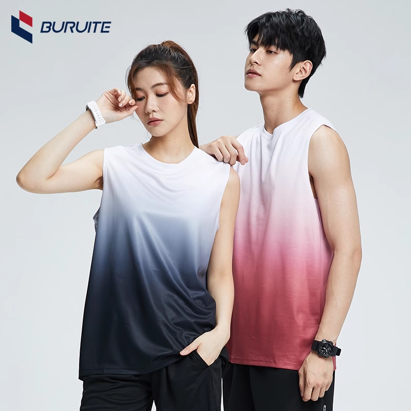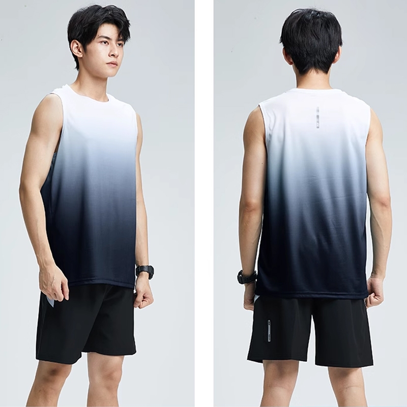 ชุดกีฬา 2 ชิ้น สีไล่ระดับ แขนสั้น+กางเกงขาสั้น ผ้าระบายอากาศ มีกระเป๋าข้าง