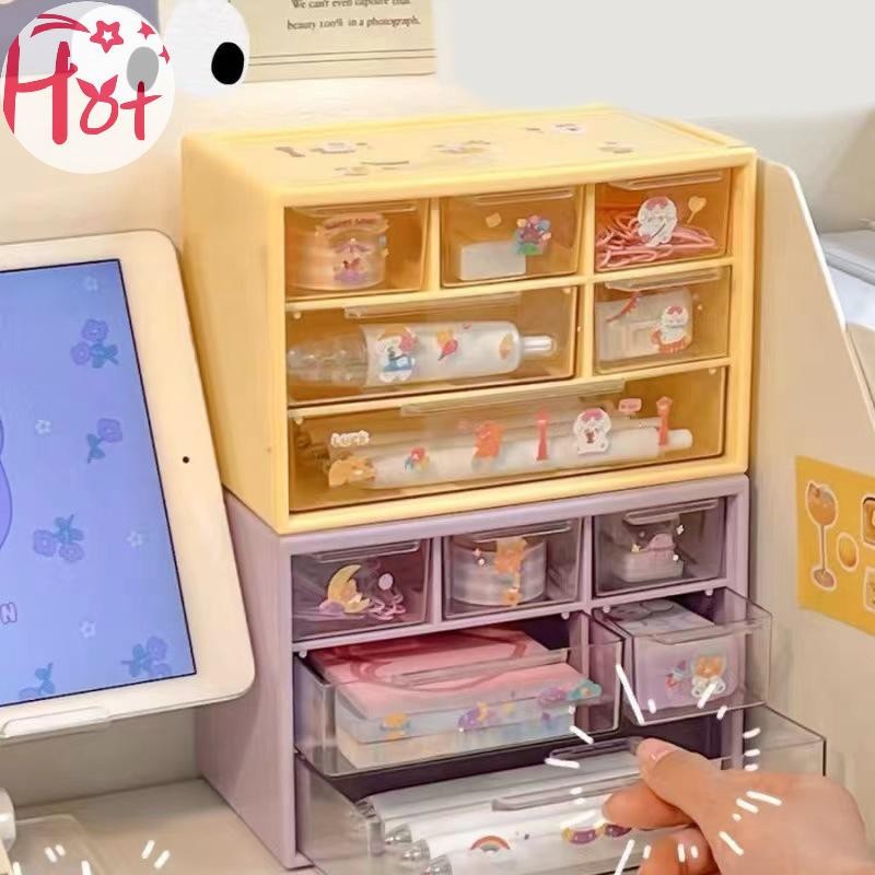 Ge เดสก์ท็อปกล่องเก็บเครื่องสําอางลิ้นชักหกตารางอะคริลิที่มองเห็นได้เครื่องประดับออแกไนเซอร์วางซ้อนกันได้กันฝุ่นกรณีตาราง