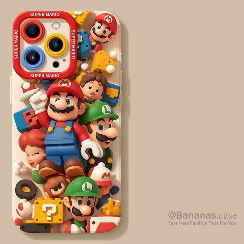 เข้ากันได้กับiPhone 16 15 14 13 12 11 Pro Max X Xr Xs Max 7 8 Plus SE2020 เคสโทรศัพท์การ์ตูนSuper Mario + Lanyard Soft Cover