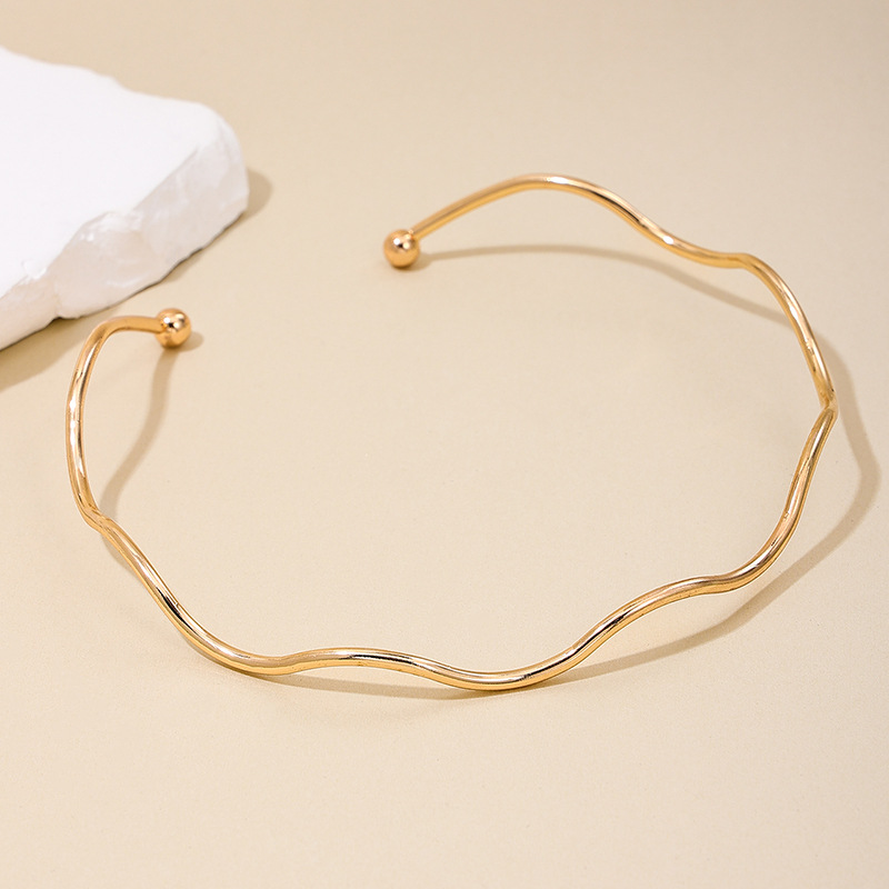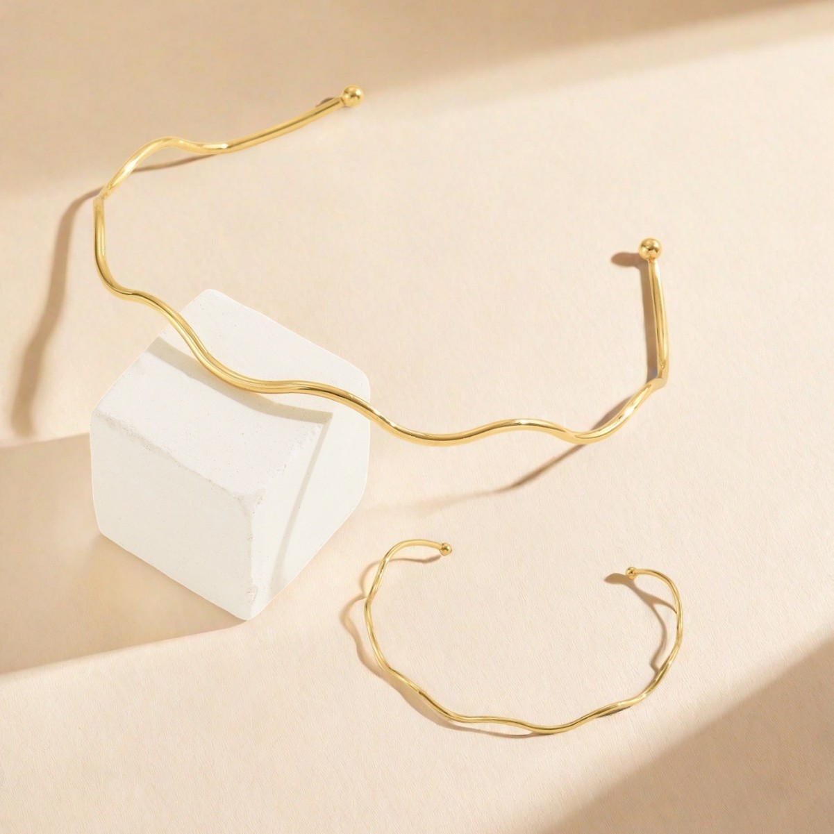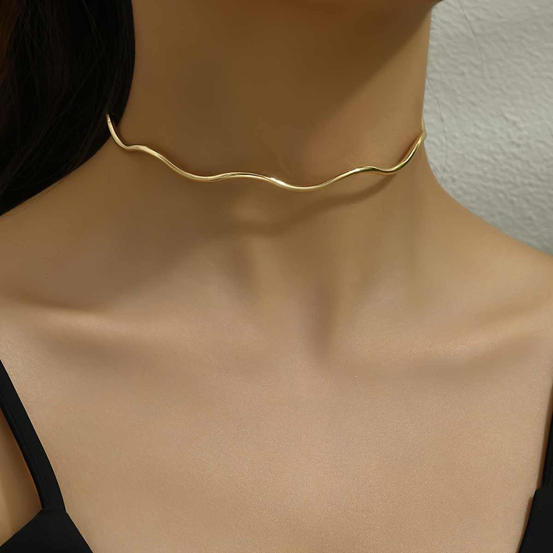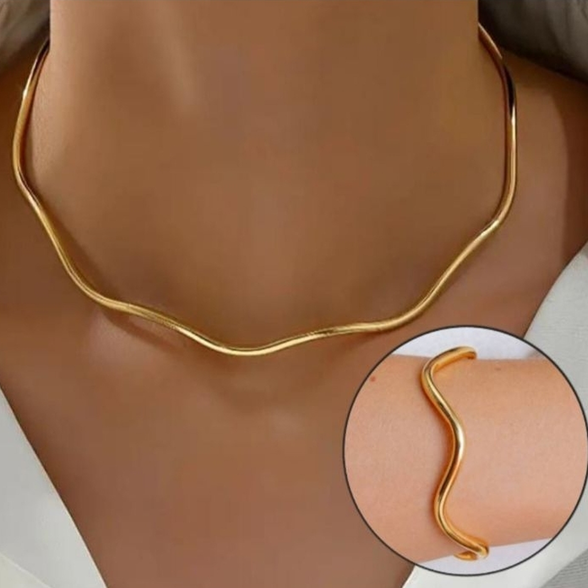 ชุดเครื่องประดับโชคเกอร์โซ่คลื่น-สร้อยคอและสร้อยข้อมือพังก์ปรับได้เครื่องประดับชุบทองสําหรับผู้หญิง