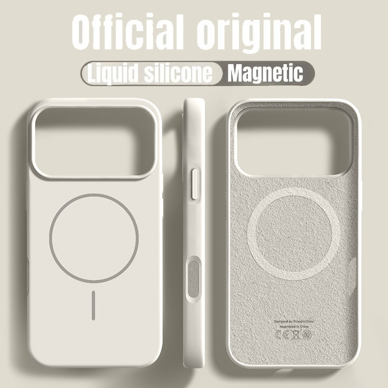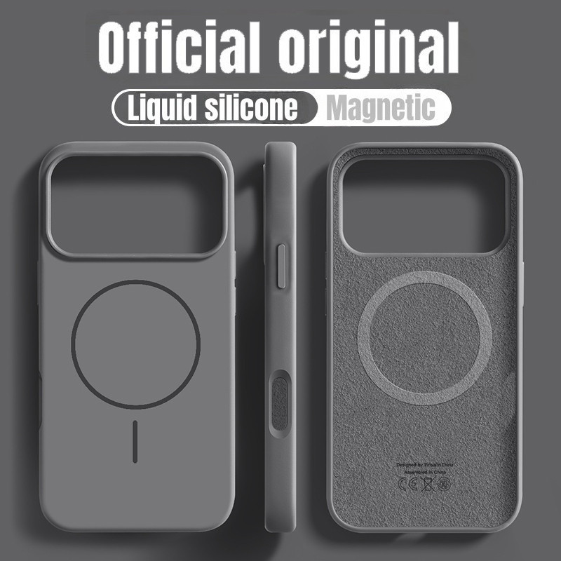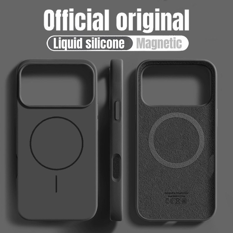 เคสโทรศัพท์แม่เหล็กซิลิโคนเหลวสีส้มคอสมิก สําหรับ iPhone 17 Pro Max 17 Air 16 16E 15 14 13 12 Pro Max 16 Plus สีทึบกันกระแทกกันชนนุ่ม