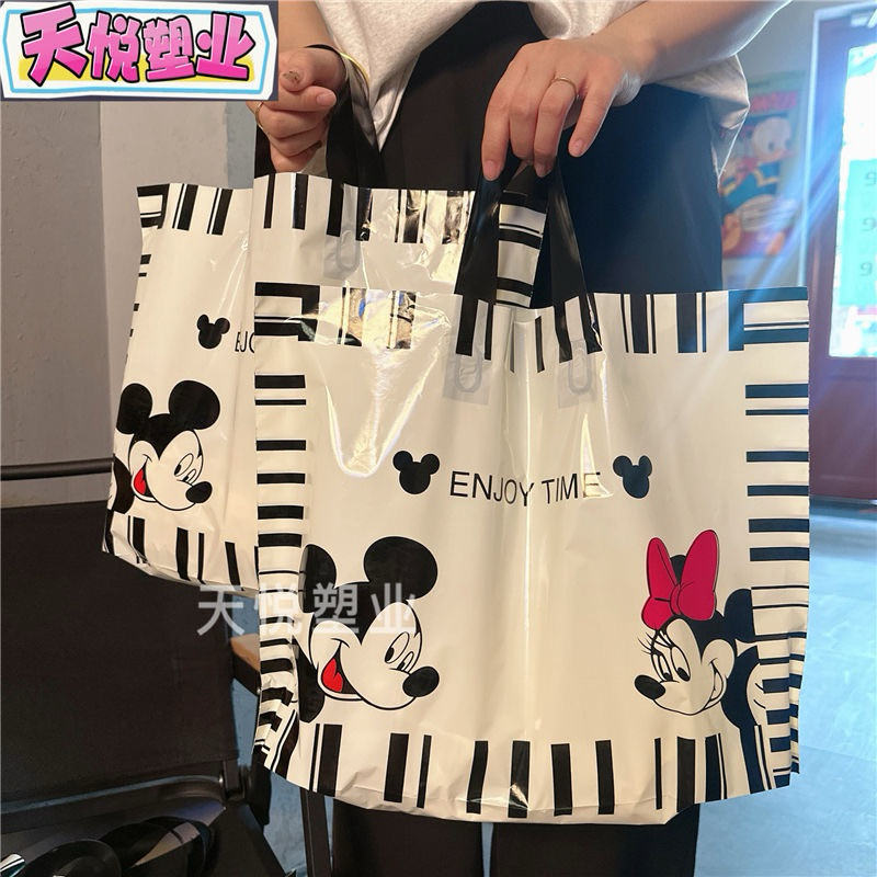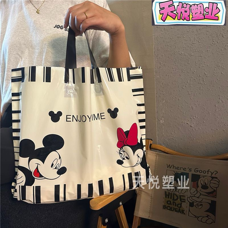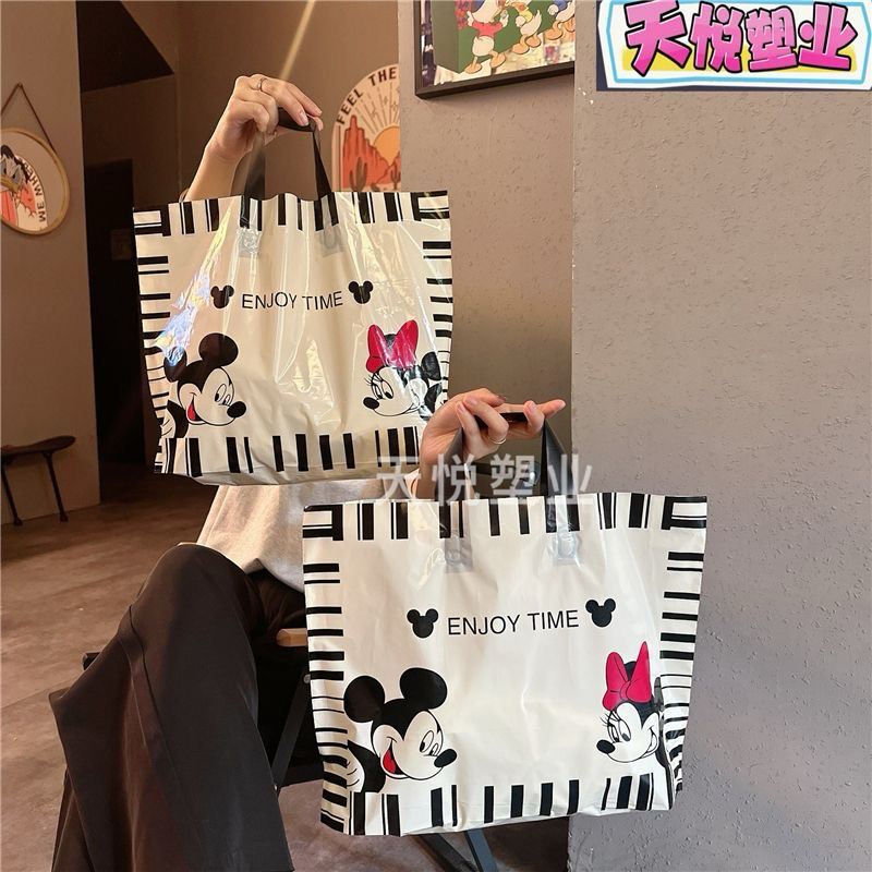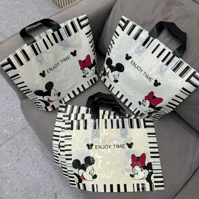 ถุงแฟชั่น ถุงชอปปิ้งใส่เสื้อลายการ์ตูนน่ารักน่าใช้เนื้อพลาสติกPE(แพ็คละ50ใบพร้อมส่งค่ะ)