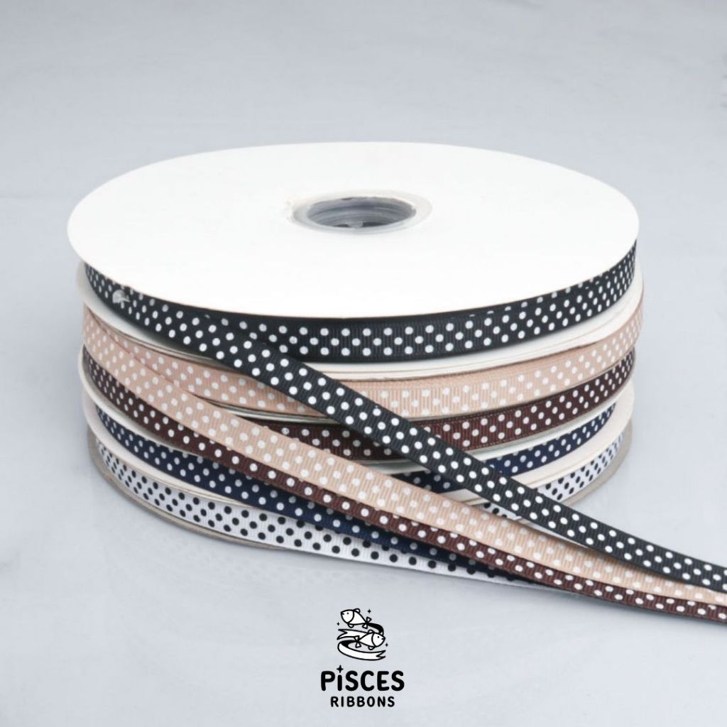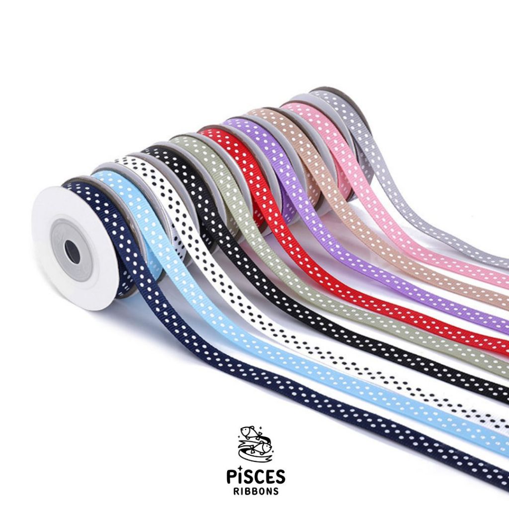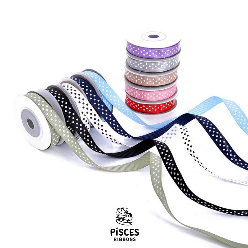 【2 หลา】* ริบบิ้นกรอสเกรนลายจุด Dotty Charm 1 cm. – สไตล์มินิมอล พรีเมียม น่ารัก ผูกของขวัญ ตกแต่งเสื้อผ้า [RBY-0093]