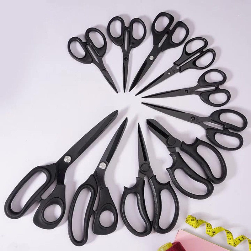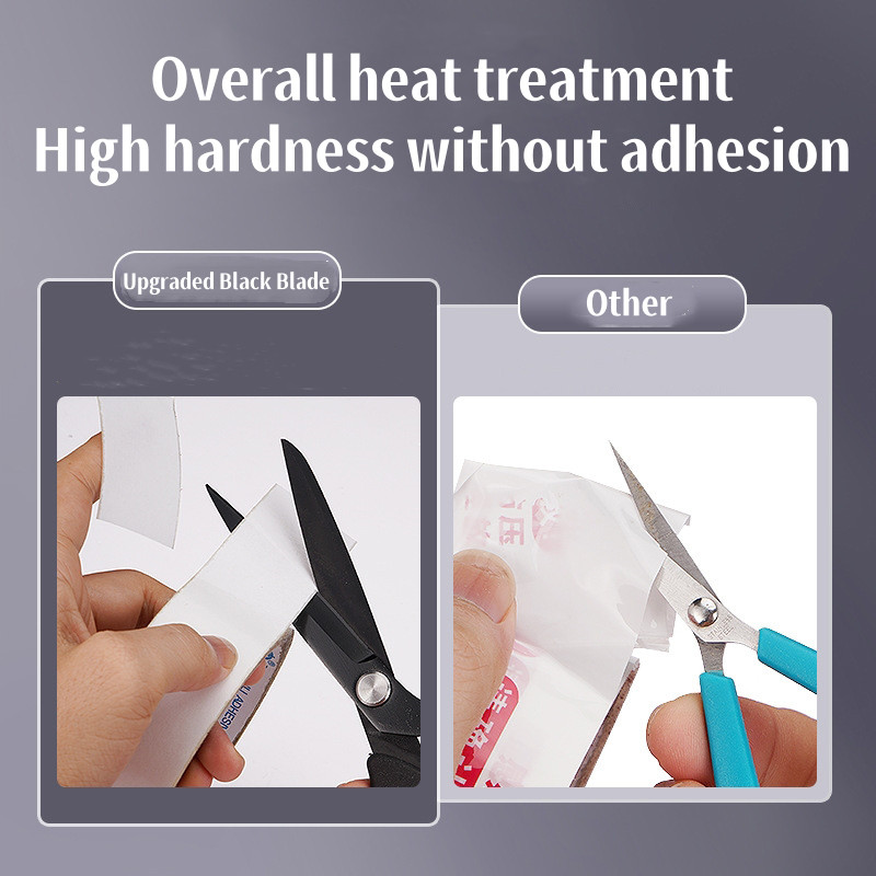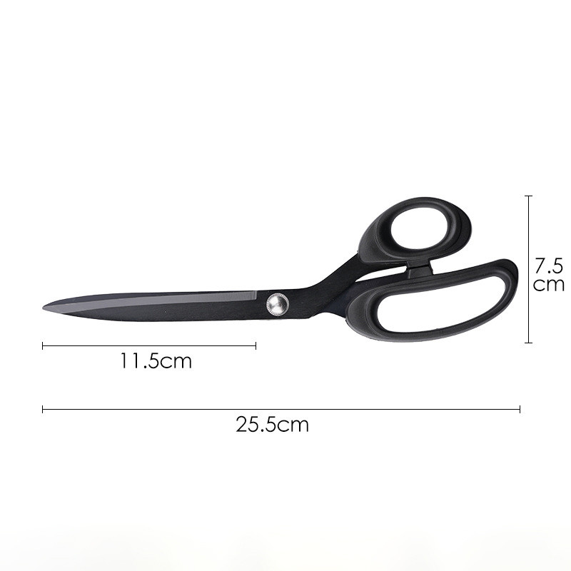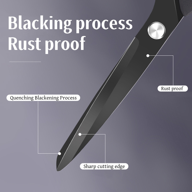 ใบมีดสีดําตัดเสื้อกรรไกรตัดสแตนเลสทนต่อการสึกหรอไม่ง่ายต่อการกาวครัวเรือนผ้าหนังกรรไกรตัด