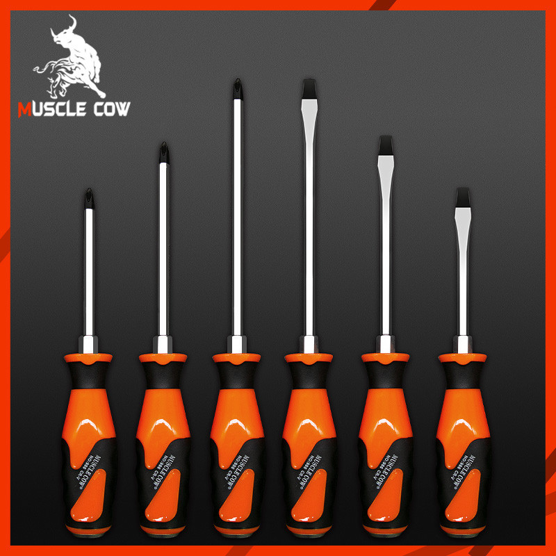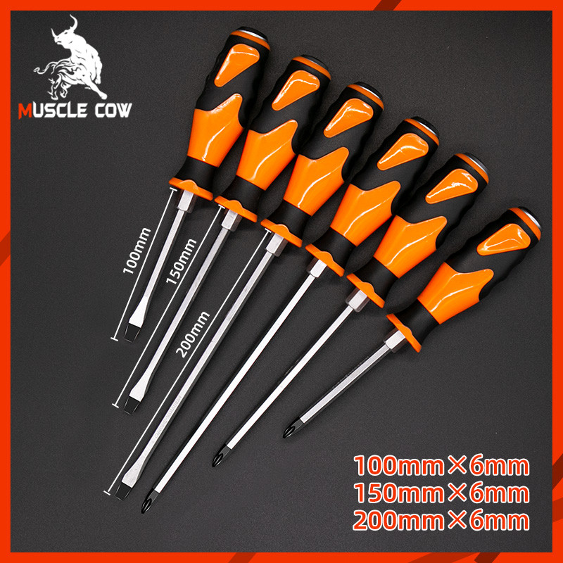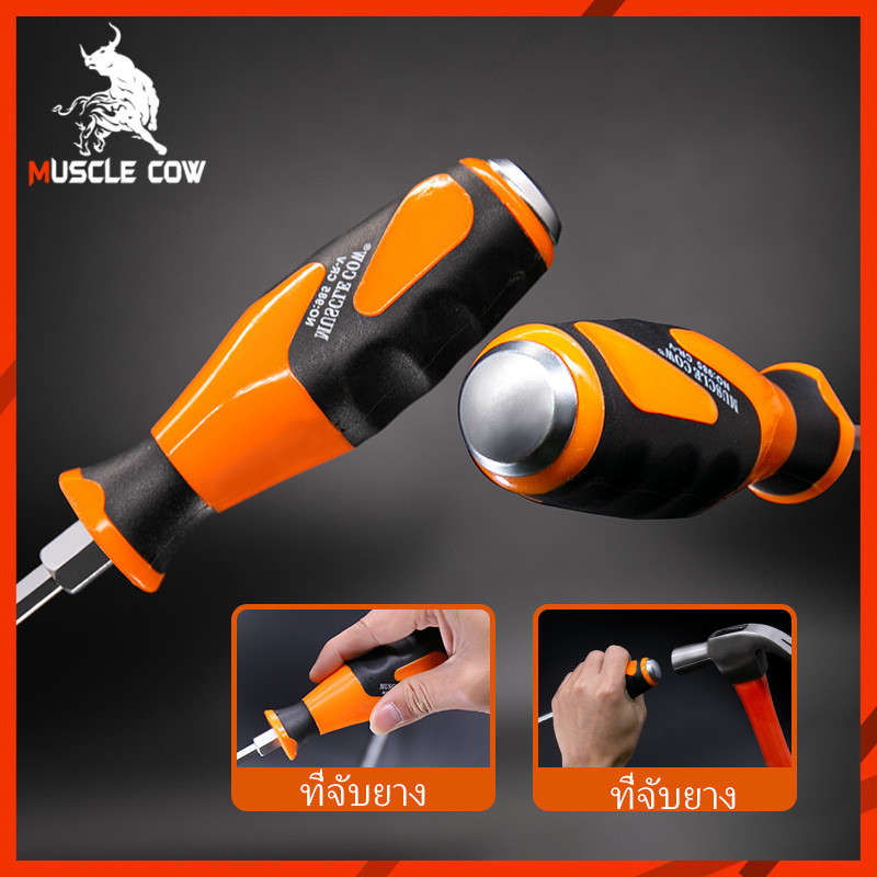 MUSCLE COW ไขควงด้ามยาง ปลายแม่เหล็ก ไขควงปากแฉก ไขควงปากแบน 3 ขนาด 4นิ้ว 6นิ้ว 8นิ้ว