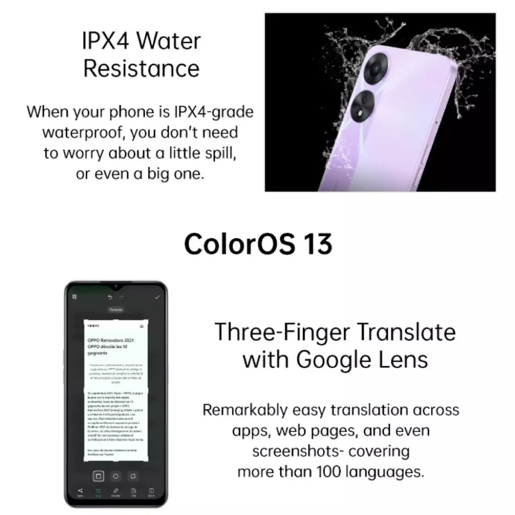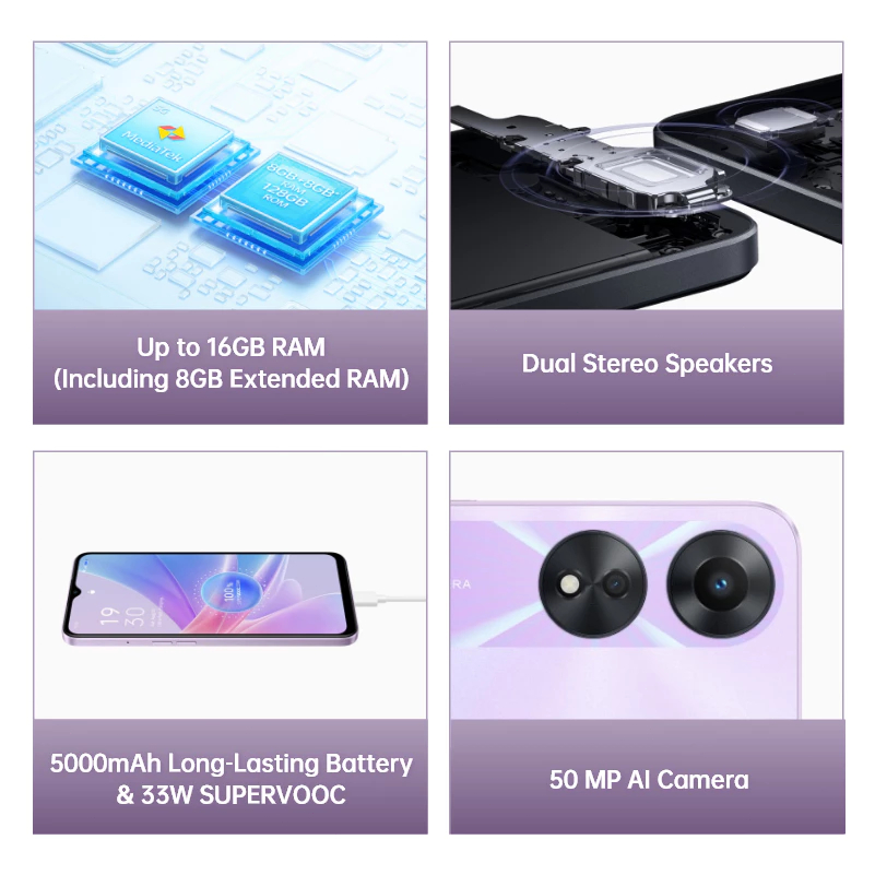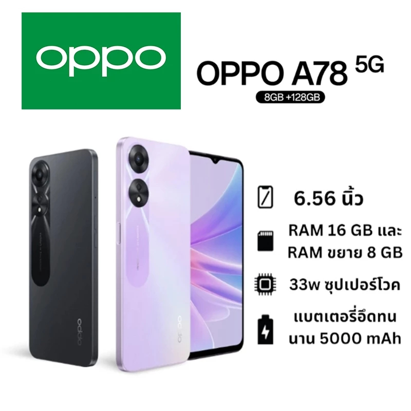 OPPO A78 มือถือสมาร์ทโฟน RAM8GB / ROM256GB กว้าง 6.43 นิ้ว 5000mah ความจุแบตเตอรี่ การรับประกันร้านค้า 1 ปี