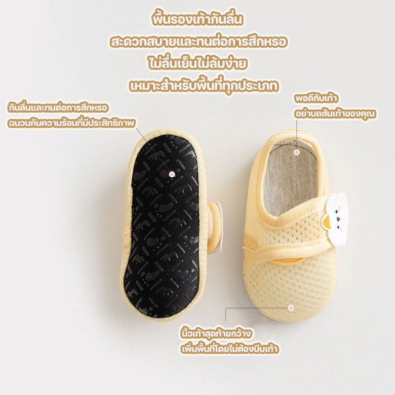 ? ยินดีต้อนรับสู่ร้านค้าของฉัน ? ? จุดขายสินค้า: 1. เหมาะสําหรับการสวมใส่ในฤดูร้อน: การออกแบบที่บางและมักใช้ผ้าตาข่ายและผ้าระบายอากาศซึ่งสามารถเร่งการระเหยของเหงื่อจากเท้าหลีกเลี่ยงความอับชื้นป้องกันไม่ให้เท้าของทารกเหงื่อออกรู้สึกไม่สบายมากขึ้นและย