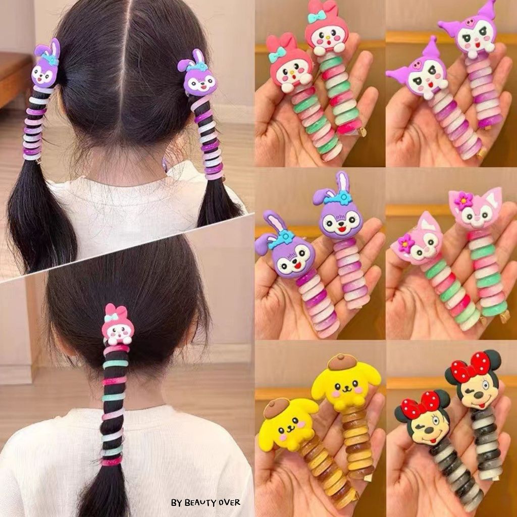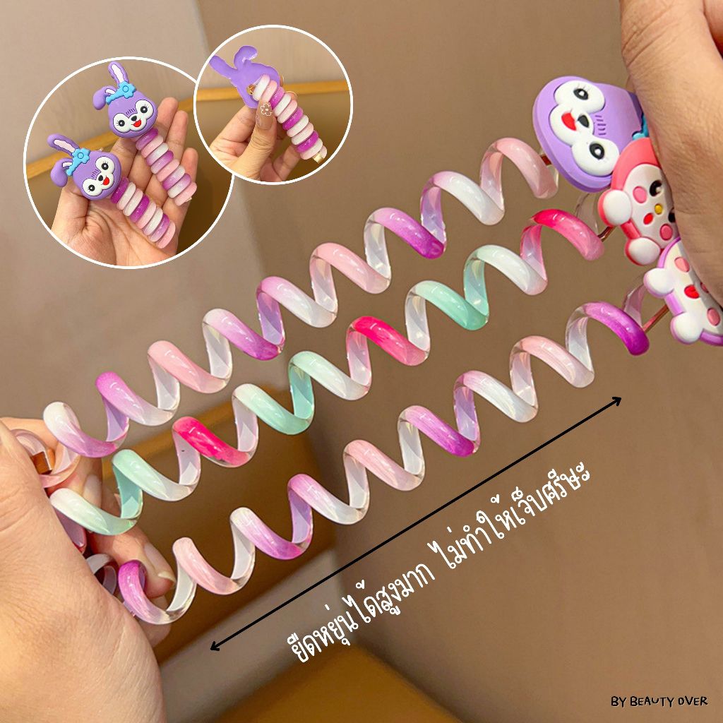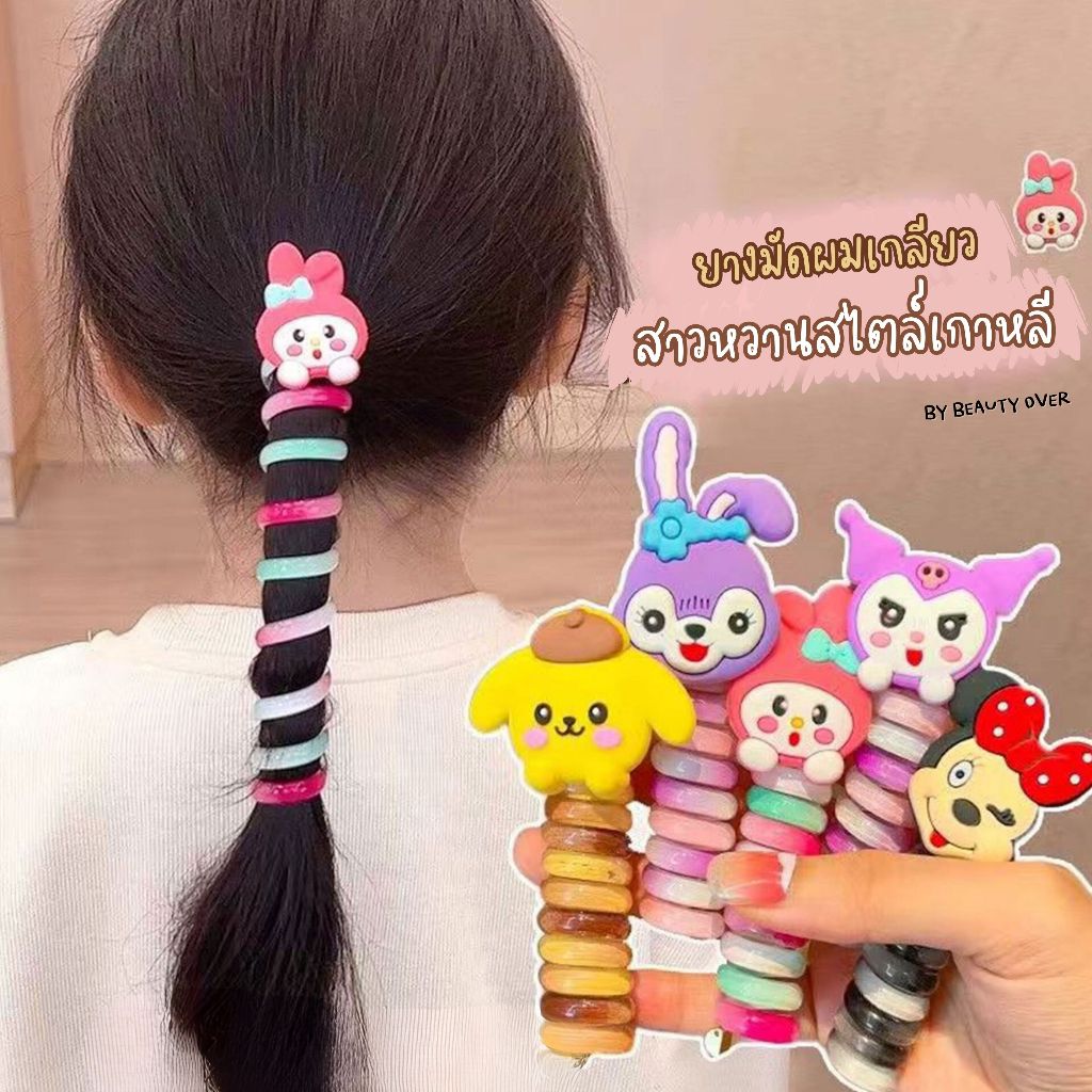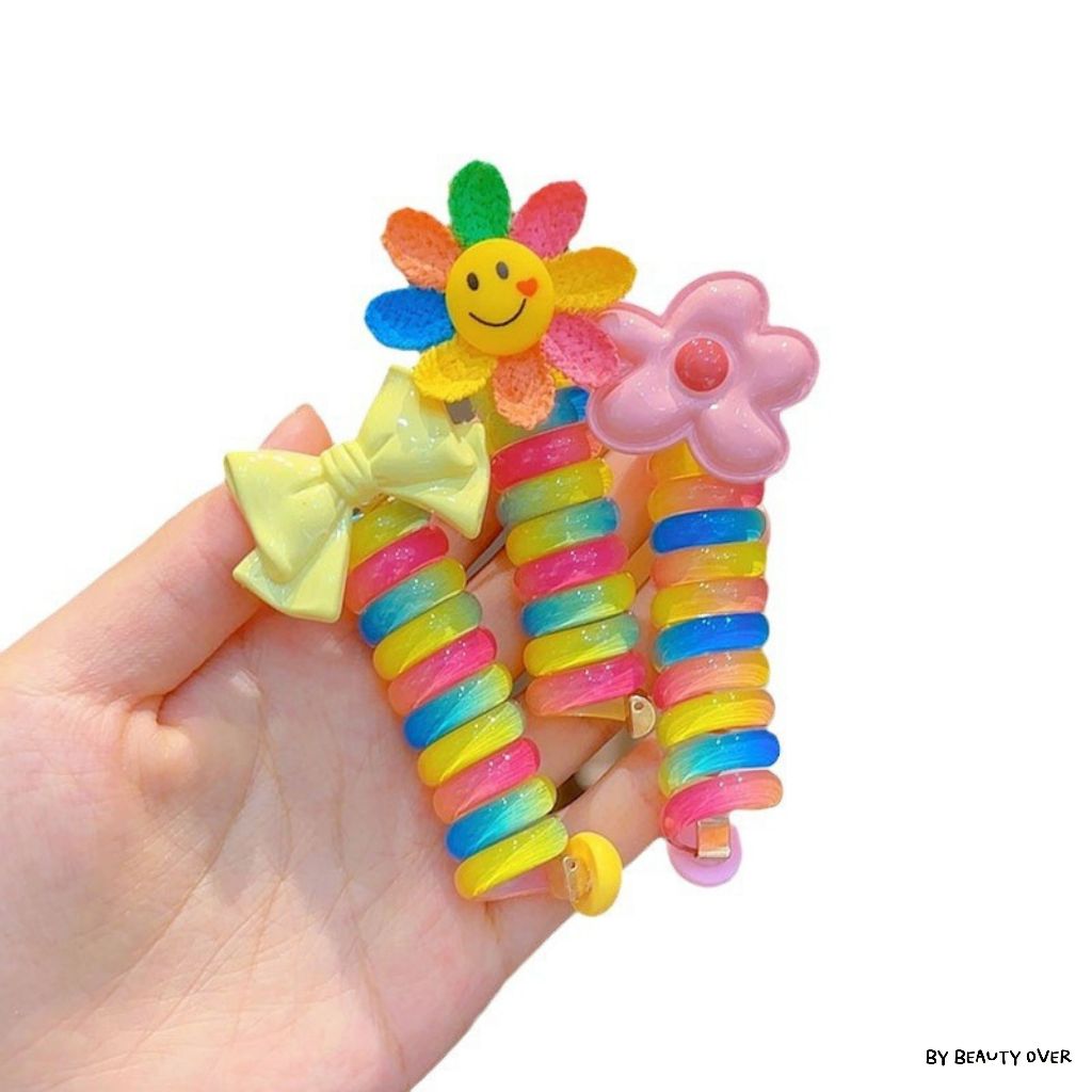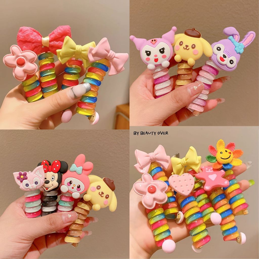 COD ยางรัดผมหางม้าเกลียวสีรุ้ง ยางรัดผมเด็ก ลายหมี ดอกไม้ ดอกทานตะวัน หัวใจ ตัวการ์ตูน