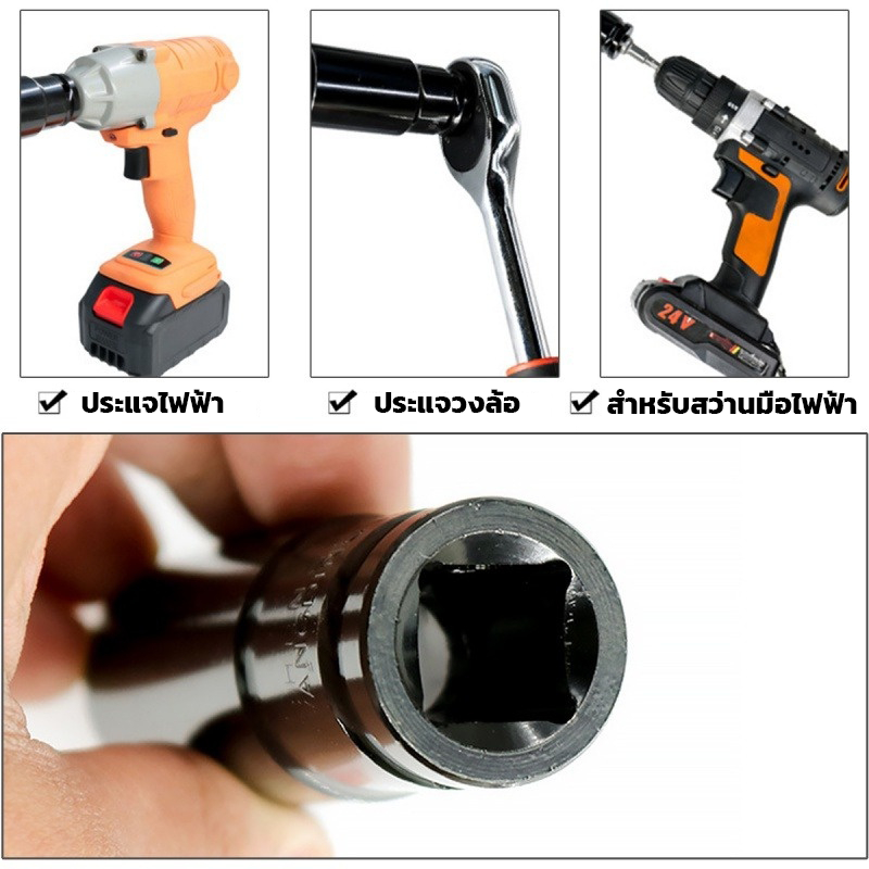【รับประกัน 2 ปี】10 ชิ้น/ชุด ชุดประแจไฟฟ้า ด้ามหกเหลี่ยม บล็อคยาว ชุดบล็อคยาว ชุดบล็อก ชุดประแจไฟฟ้า 8-24mm