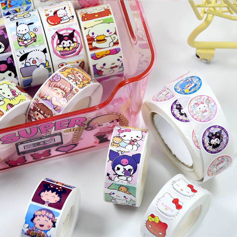 500 ชิ้น Sanrio Kuromi My Melody DIY เทปฉลากสติกเกอร์กล่องของขวัญหนังสือน่ารักปิดผนึกตกแต่ง