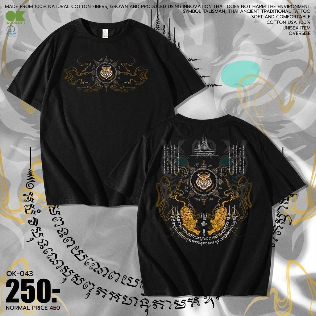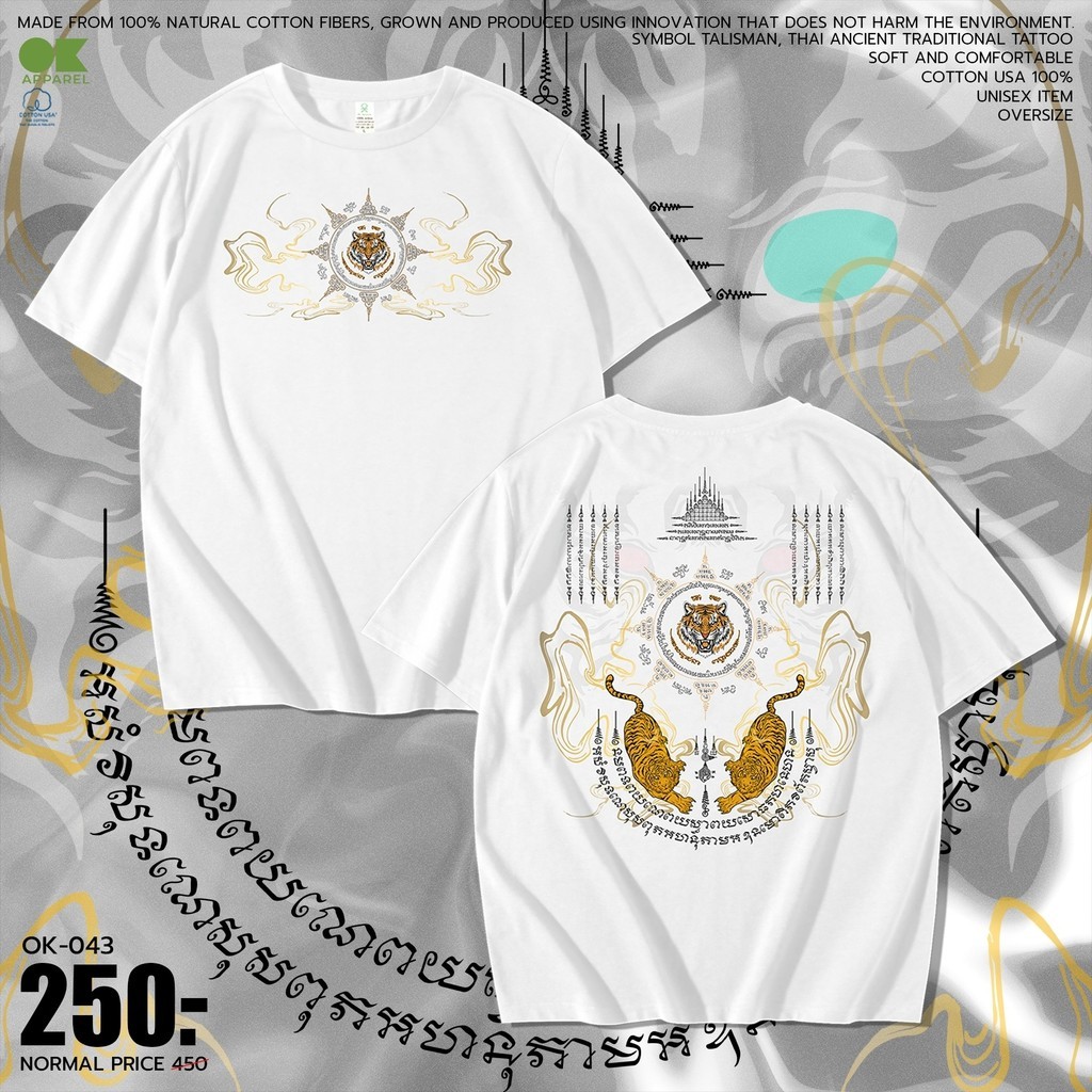 OK Apparel เสื้อยืดคอกลมแขนสั้น ลาย เสือลงยันต์ Oversize Cotton ⚡️USAคุ้มสุด!⚡️
