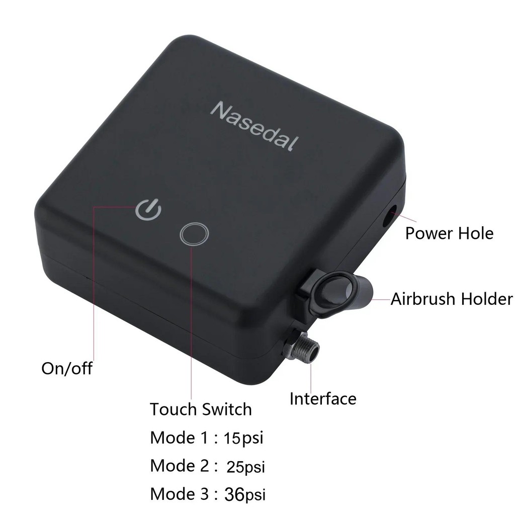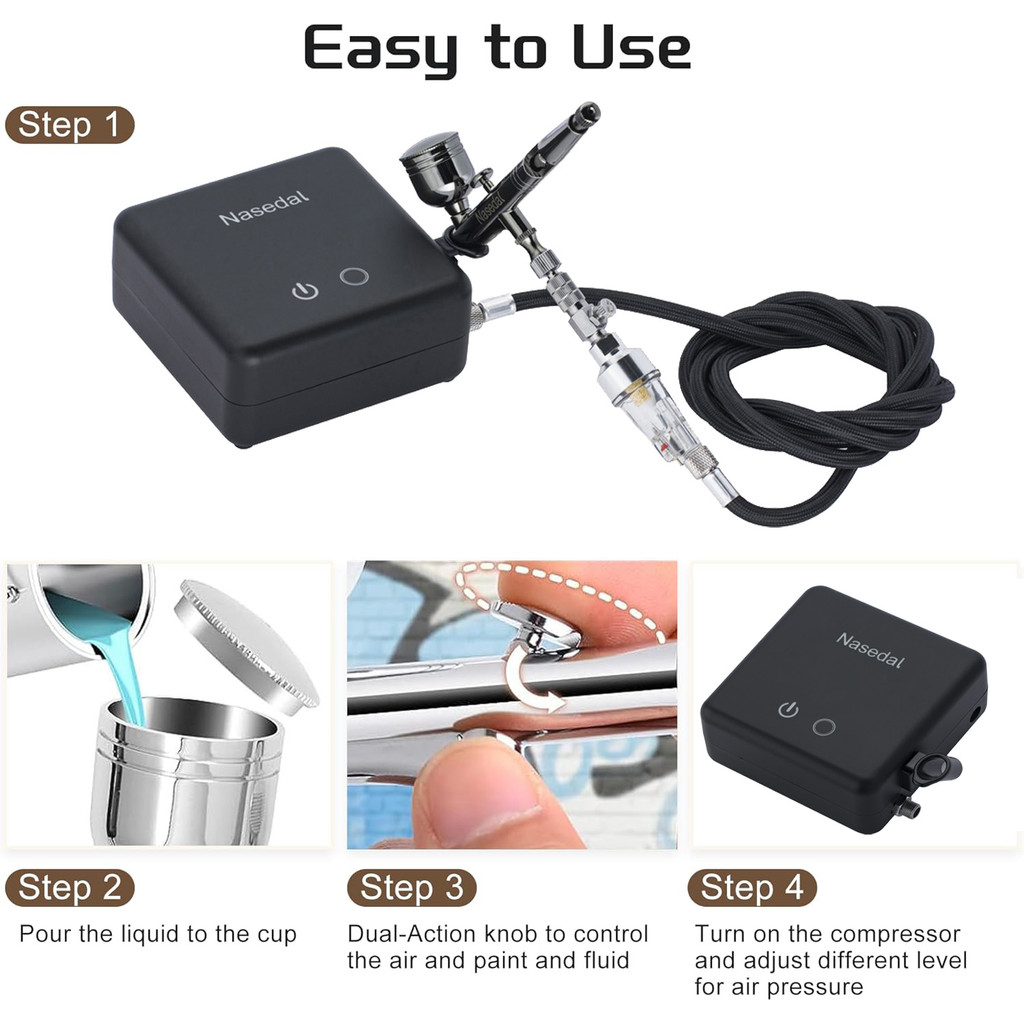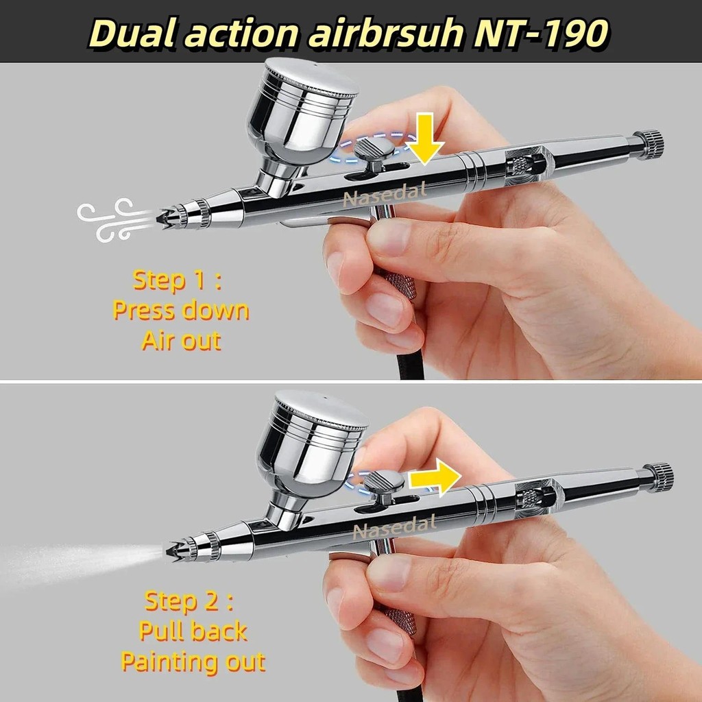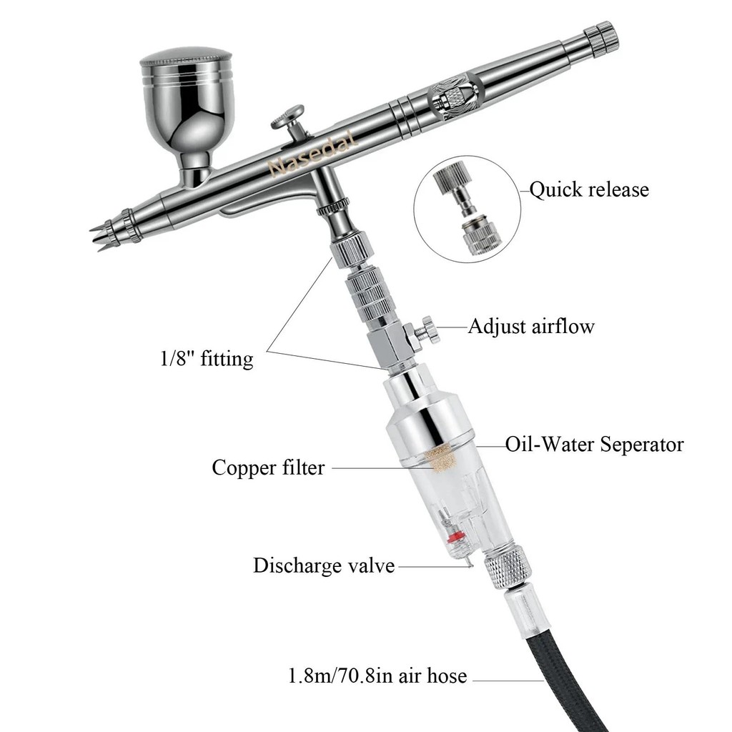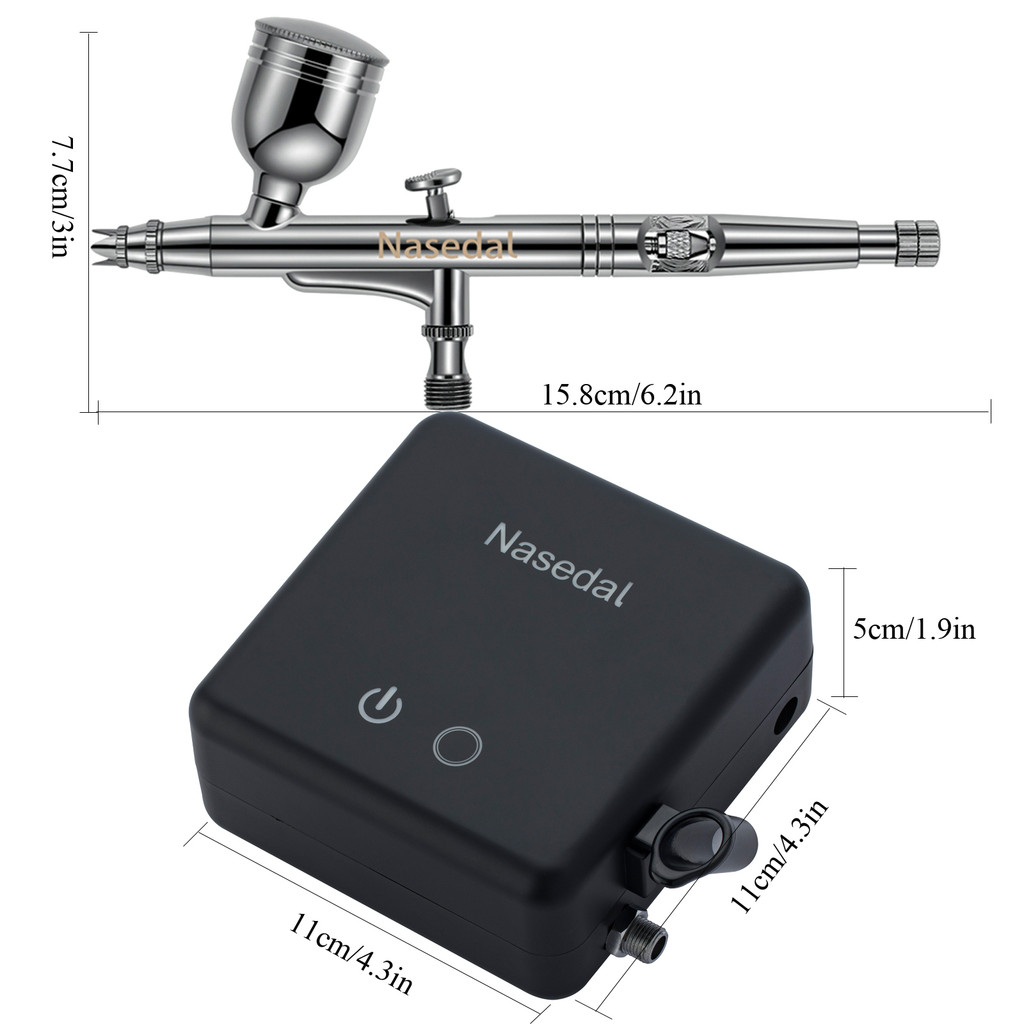 Nasedal ทองแดง Airbrush Compressor Kit Auto-Stop 36Psi 7cc 0.3 มม.Dual-Action Airbrush สเปรย์ปืนสําหรับรุ่นเค้กภาพวาดเล็บ Art