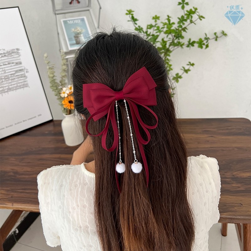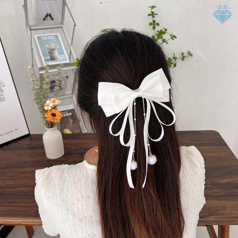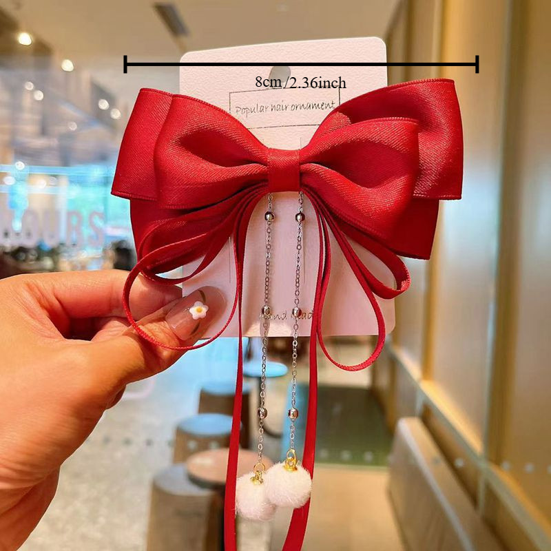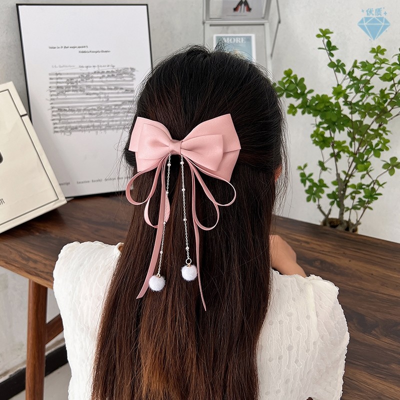 Bowknot พู่ Hairpin แฟชั่นเกาหลี Elegant ริบบิ้นฤดูใบไม้ผลิคลิปอุปกรณ์เสริมผมสําหรับสาวหวาน