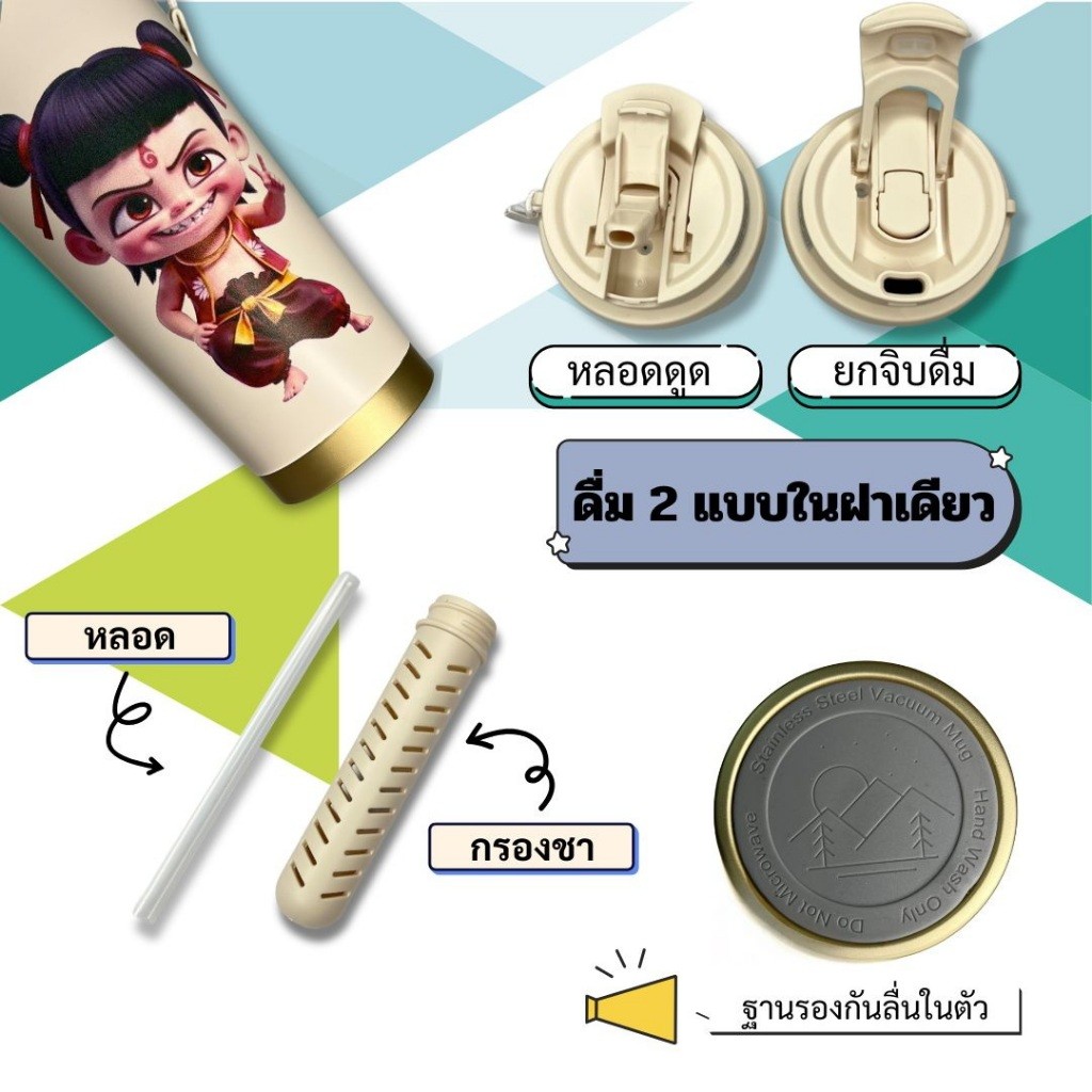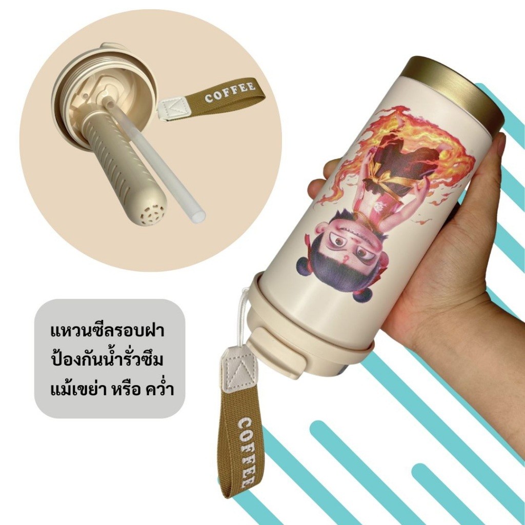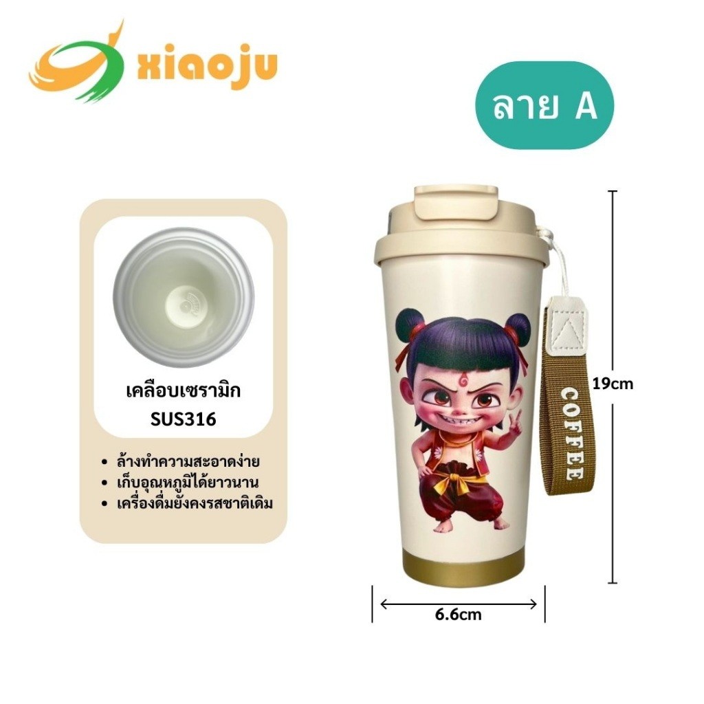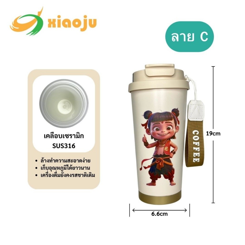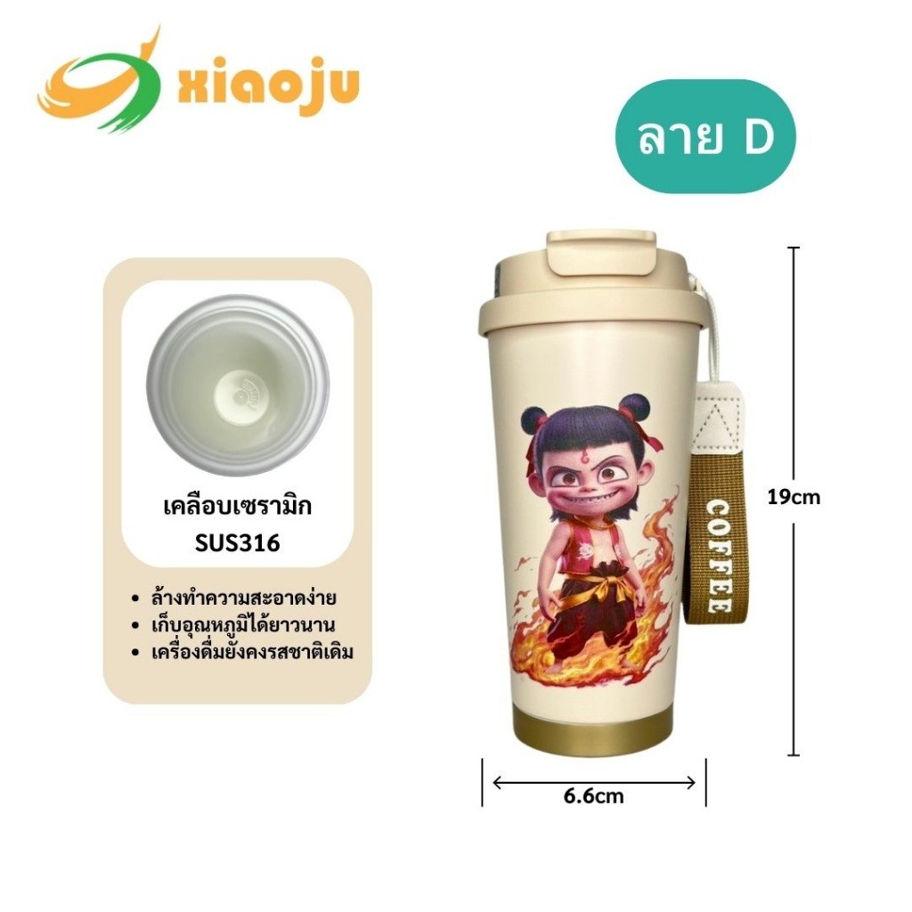 XIAOJU แก้วน้ำเสี่ยวจู เก็บอุณหภูมิได้ ร้อน & เย็น สกรีนลาย 3D เคลือบเซรามิก ทำความสะอาดง่าย ขนาด 520ml