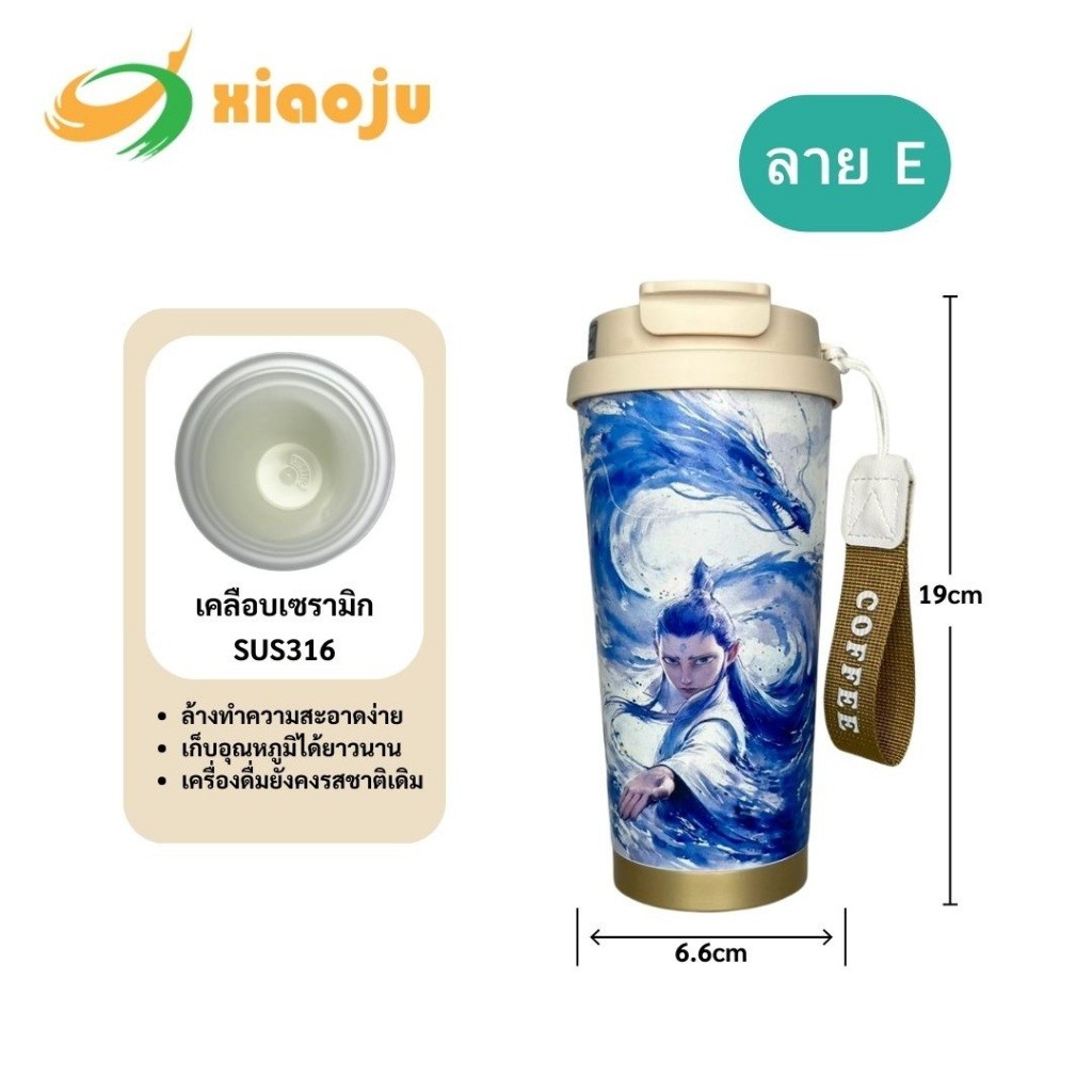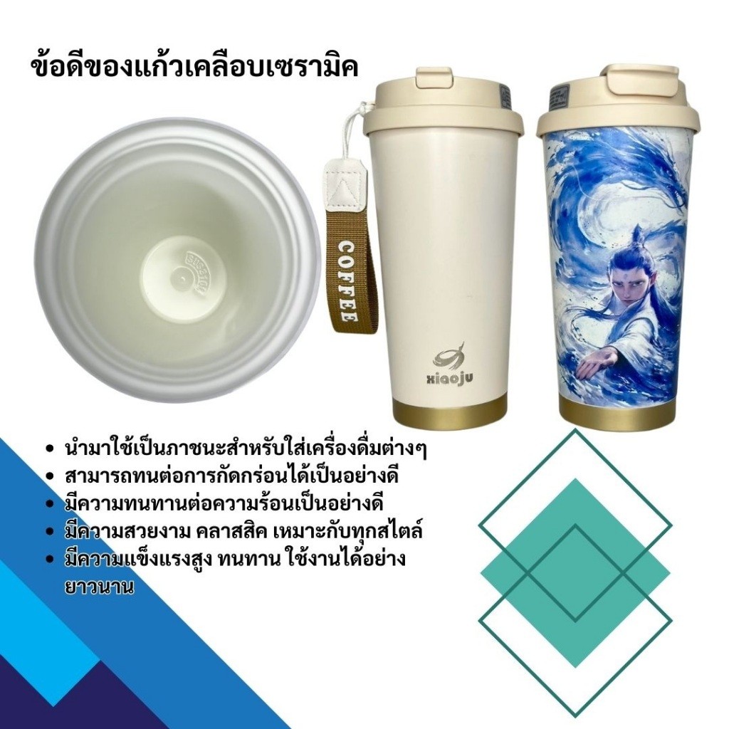 XIAOJU แก้วกาแฟ สกรีนลาย 3D เก็บอุณหภูมิได้ ร้อน & เย็น เคลือบเซรามิก ทำความสะอาดง่าย ขนาด 520ml