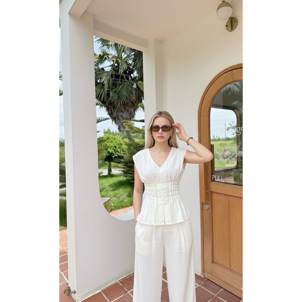 เซตเสื้อแขนกุด/กางเกงผ้าลินิน