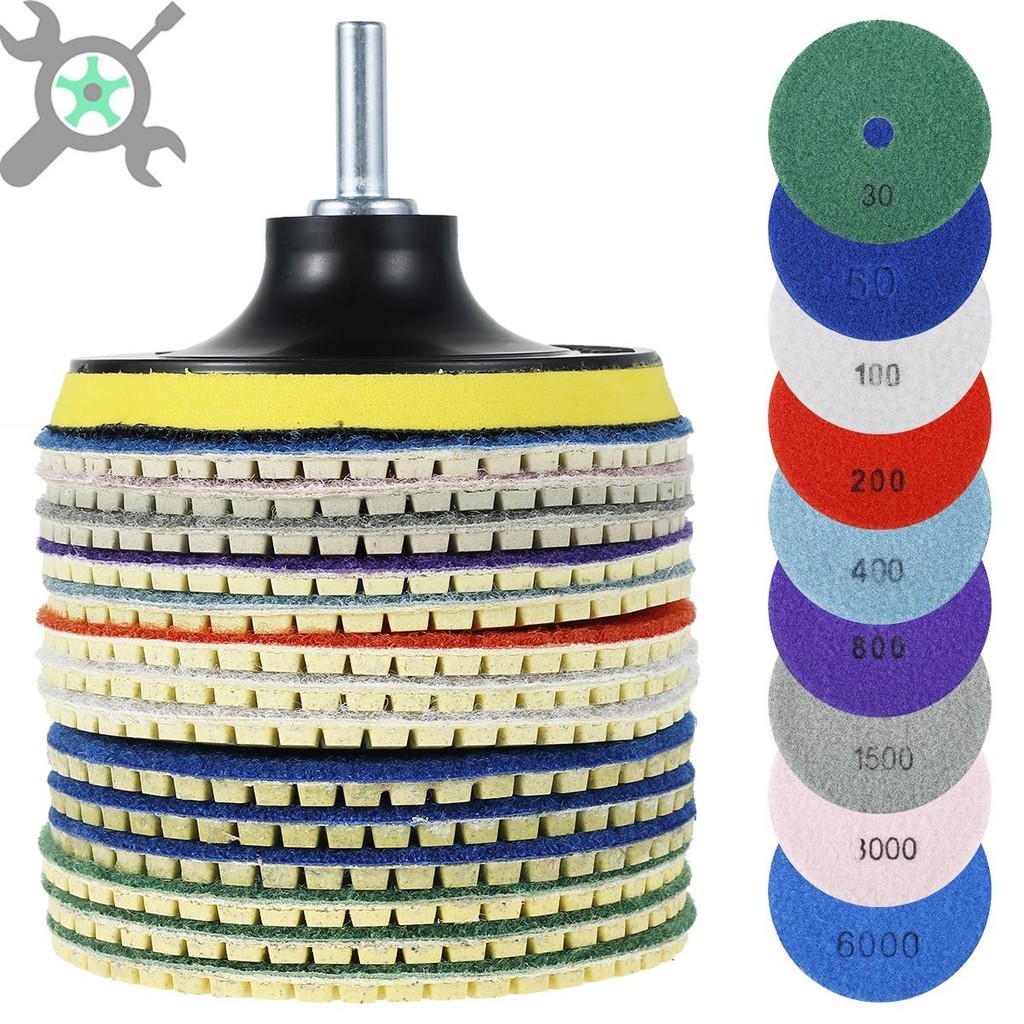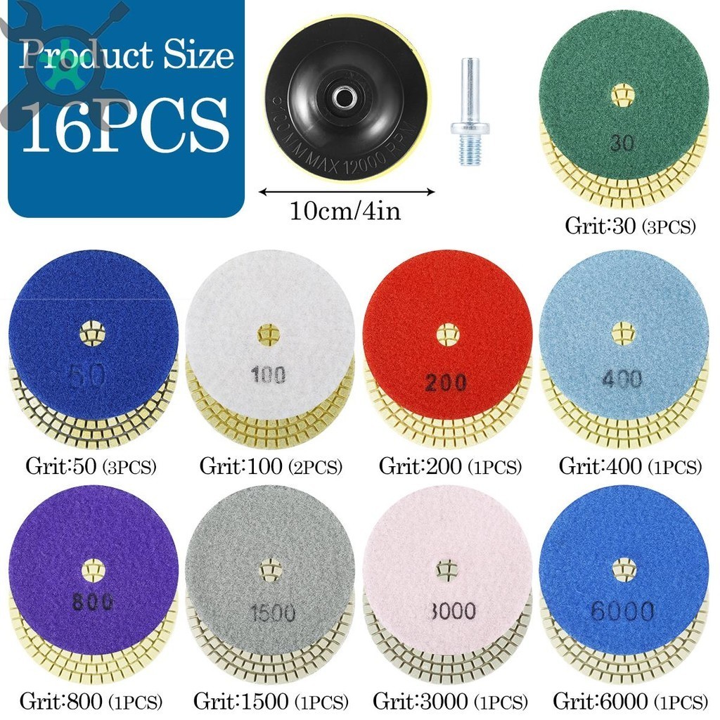 แผ่นขัดเพชร 16 ชิ้น 4 นิ้ว 30-6000 กรวดแผ่นขัดเพชรเปียกแห้งเร็วเปลี่ยนแผ่นขัด SHOPCYC9162