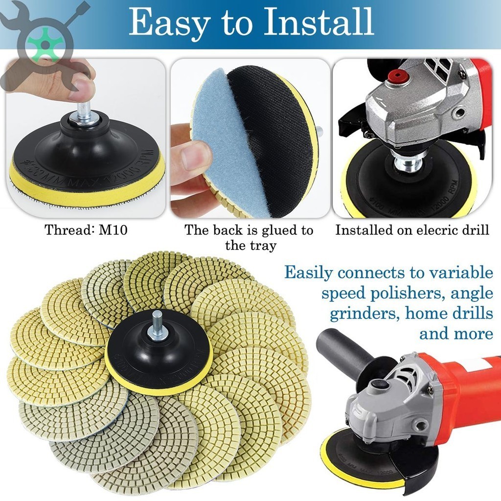 7/10/12/13/14/15/16 แผ่นโลหะเพชรขัด ชิ้นเพชรแผ่นขัด 4 นิ้ว 3000-6000 Grit Diamond Buffing Pads เปียกแห้ง Quick เปลี่ยนแผ่นขัด ใบเพชรอ่อนตัว แผ่นขัดเพชรเปียกหินแกรนิตหินอ่อน