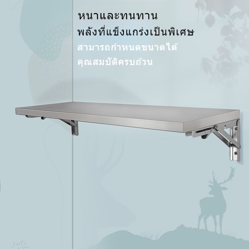 ห้องครัวที่เรียบง่าย 304 สแตนเลสพับโต๊ะเก็บของชั้นวางพื้นบ้านโต๊ะเก็บของติดผนัง