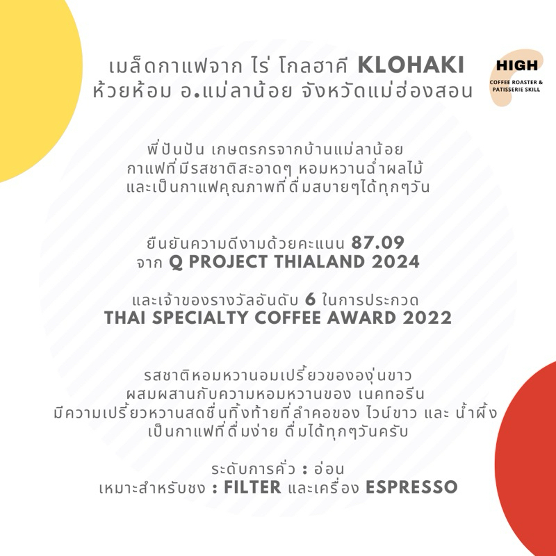 เมล็ดกาแฟ Klohaki Natural โกลฮาคี คั่วอ่อน บ้านแม่ลาน้อย จังหวัด แม่ฮ่องสอน