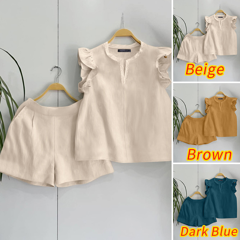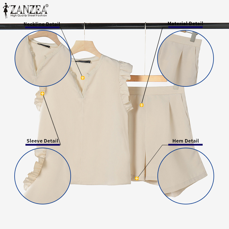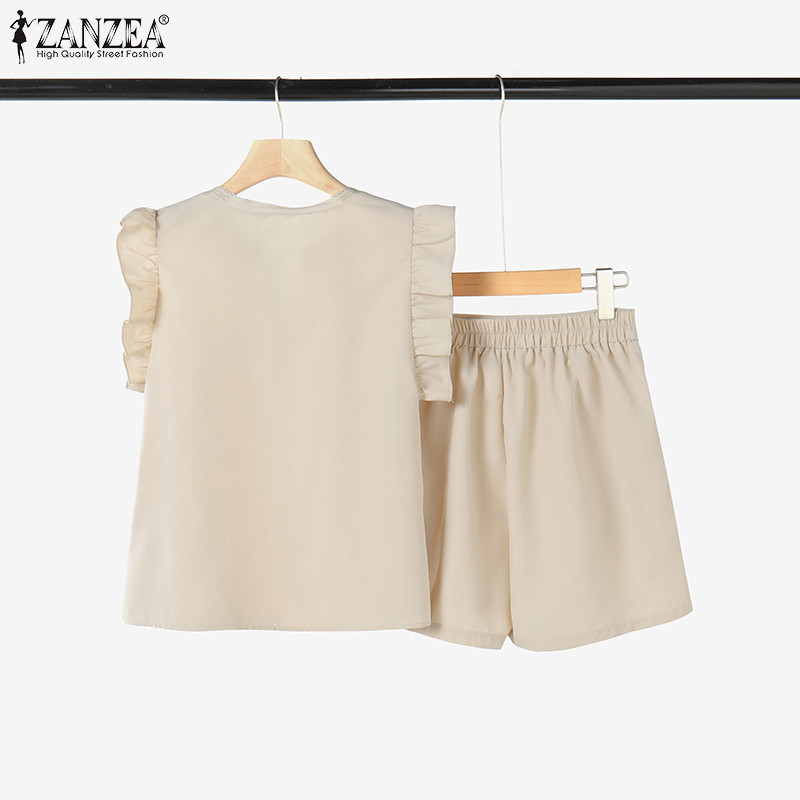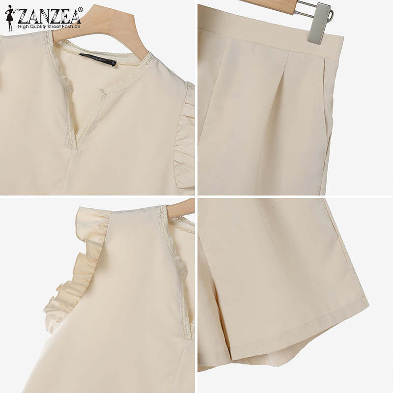 Zanzea ผู้หญิงเกาหลีลําลองคอวีแขนจีบ Spliced กระเป๋าชุดสองชิ้น