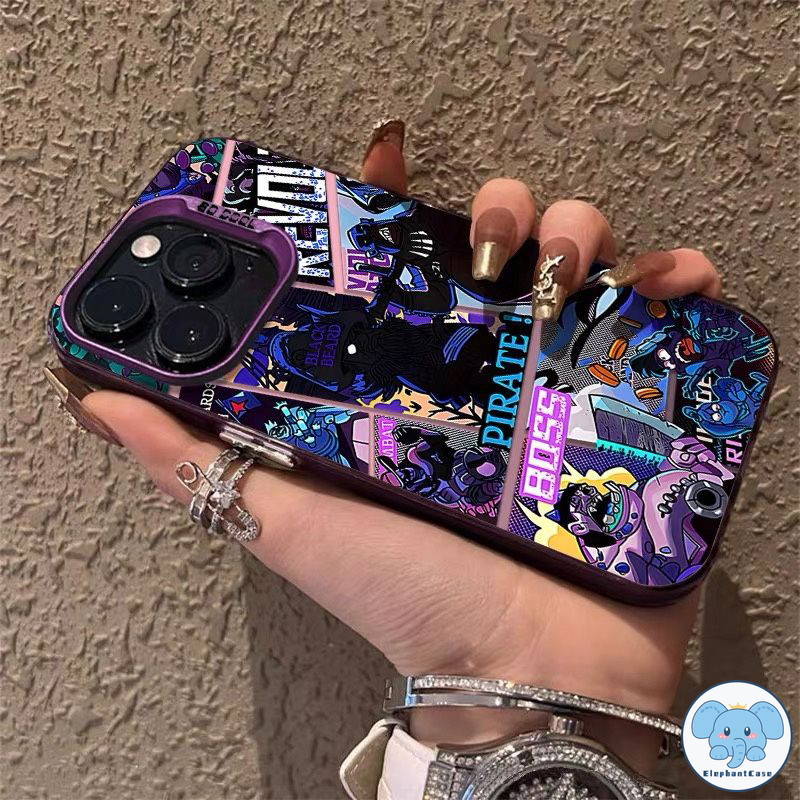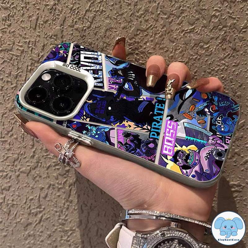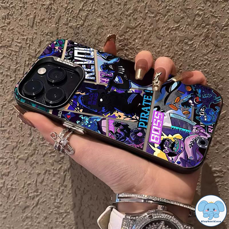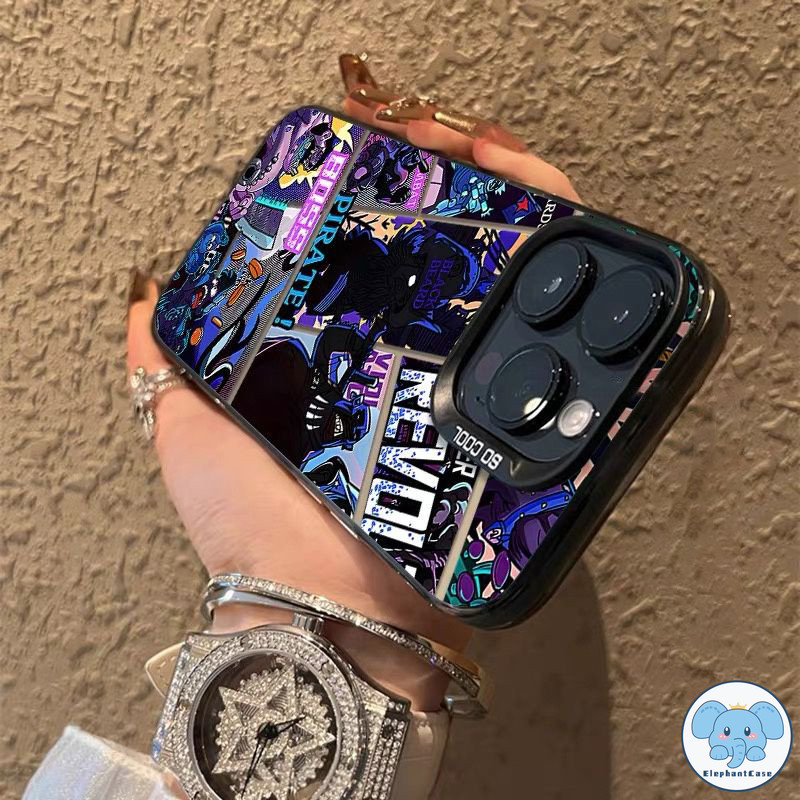 เคส IPhone 15 13 11 16 14 12 Pro Max XR 7 8 16 15 14 Plus X XS Max เคสนิ่ม IMD ลายมอนสเตอร์สุดเท่สีดำสไตล์เรโทร