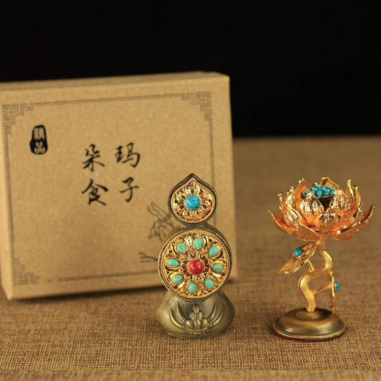 ✳☈T พุทธศาสนาทิเบตอุปกรณ์ทองแดงบริสุทธิ์ Gilt ดอกไม้อาหาร Tantric Blossom อาหารทิเบต Secret แปดเสนอดอกไม้อาหาร Duoma ชุด Bonding ราคา Bonding