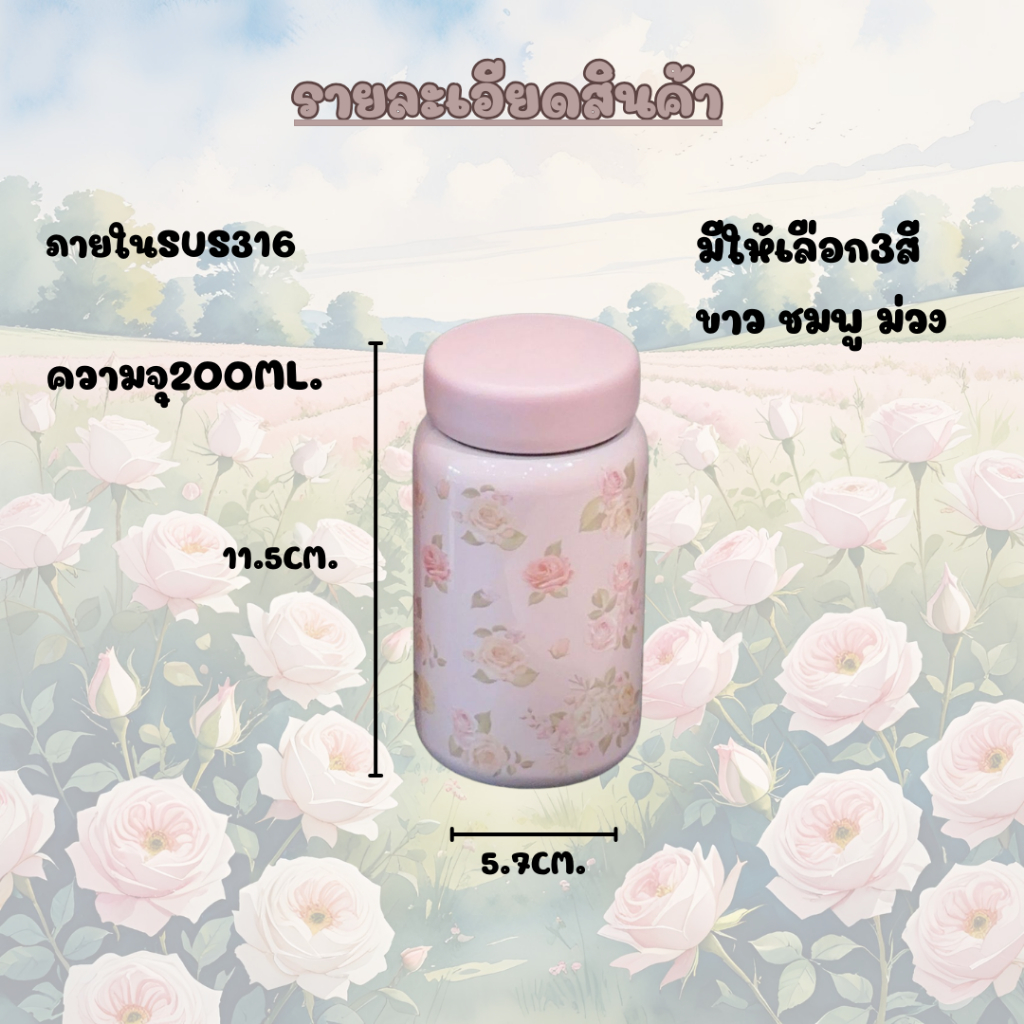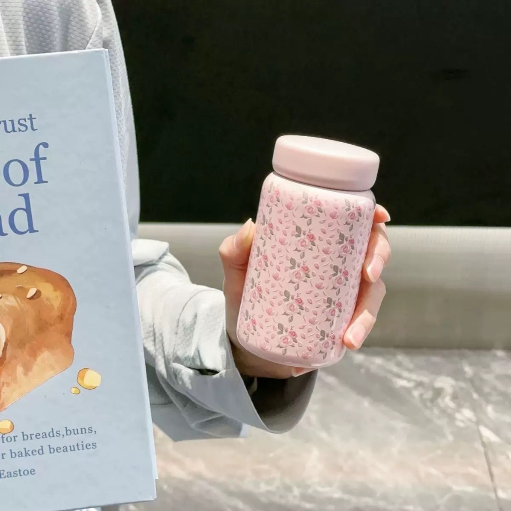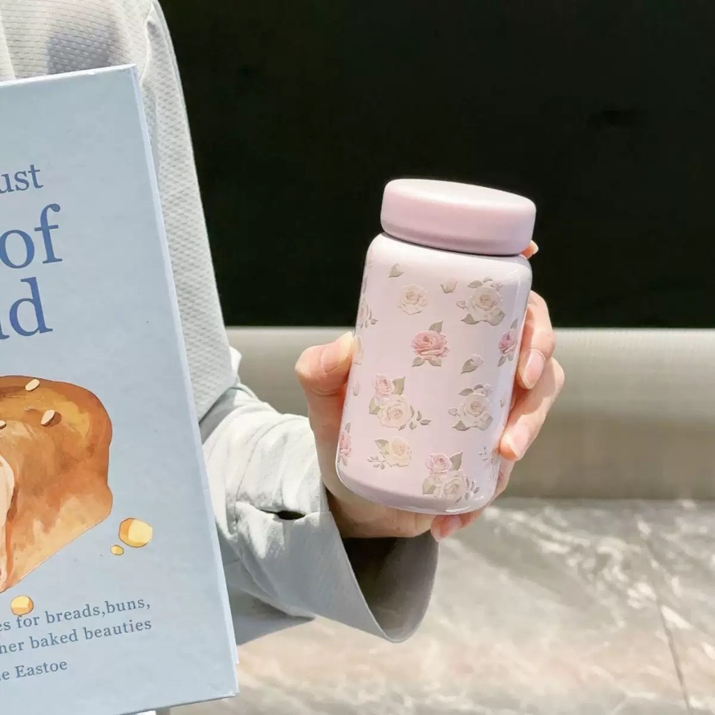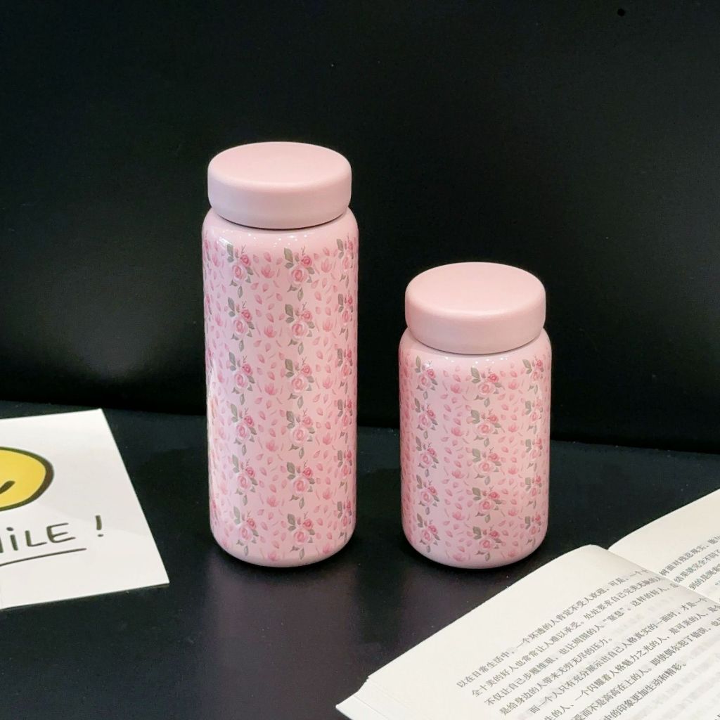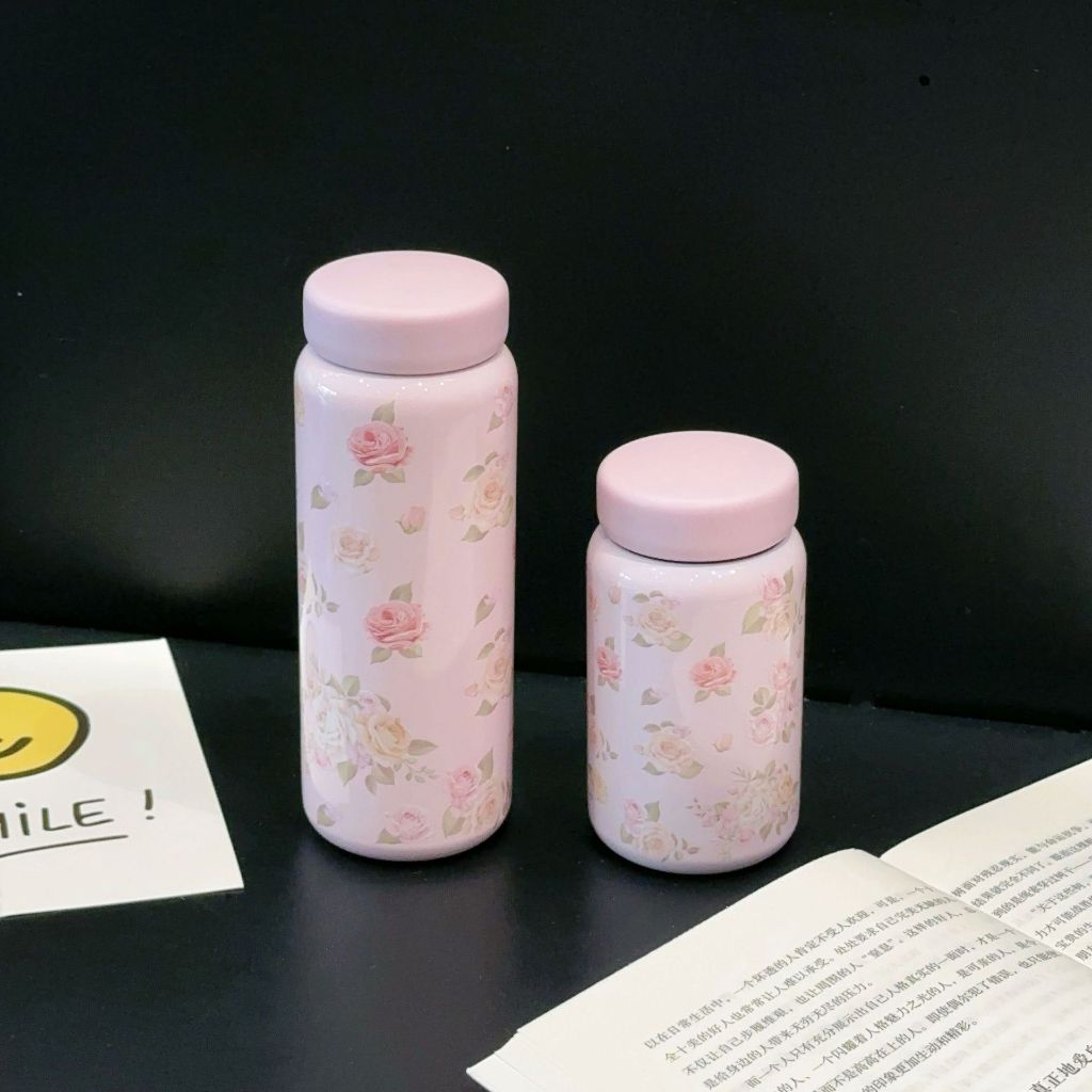 พร้อมส่ง แก้วกาแฟ ลายดอกไม้ ขนาด200ML.กระบอกน้ำสแตนเลส316 ขวดน้ำเก็บร้อนเย็น