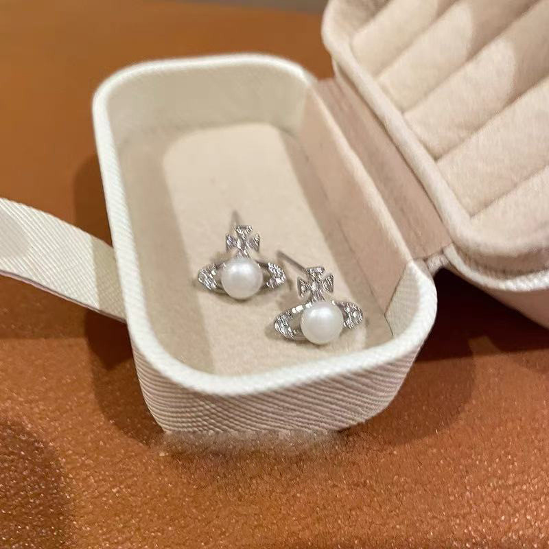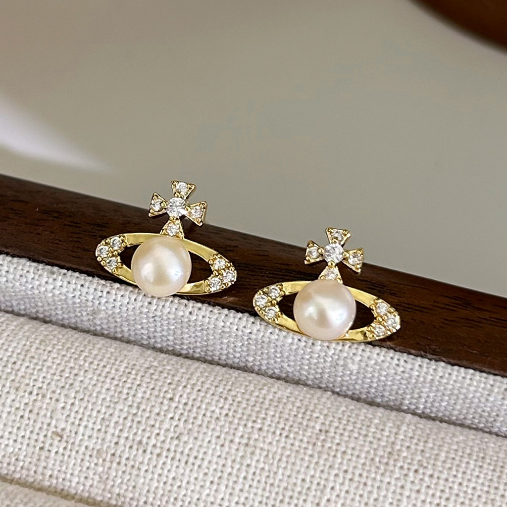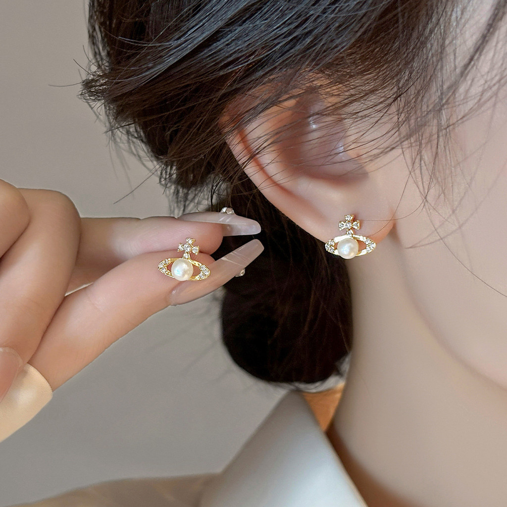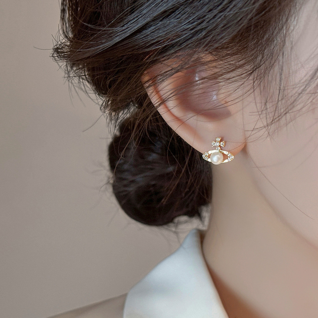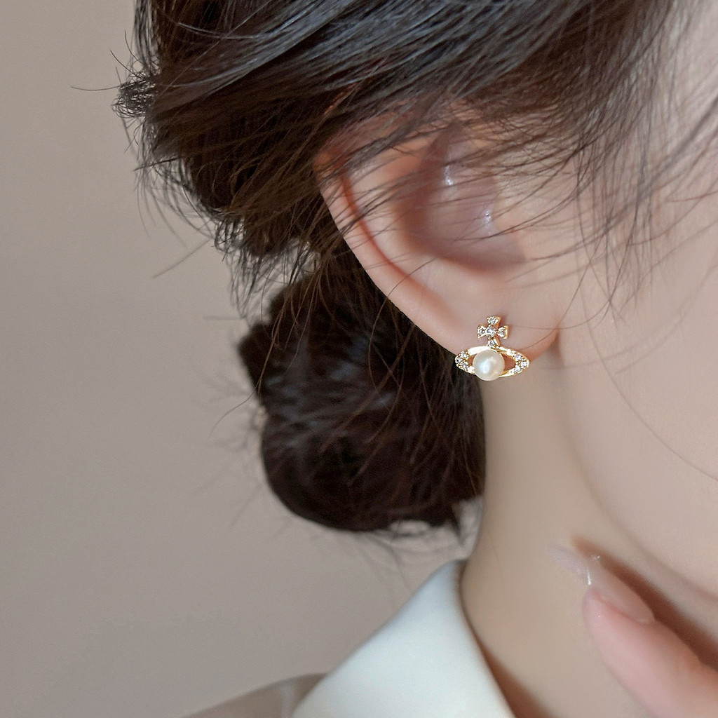 NÉYA ต่างหูดาวเสาร์เพิร์ลประดับเพชร ดีไซน์มินิมอล เงินแท้ งานหรู 2025