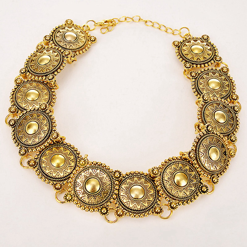 ผู ้ หญิงยิปซีเค ้ นคอโบฮีเมียนโบราณเงินเหรียญสร ้ อยคอวินเทจอินเทรนด ์ อินเดียชาติพันธุ ์ JewelrySet