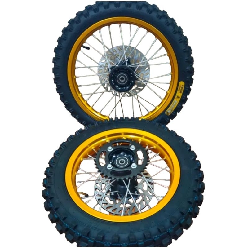 ล้อรถวิบากพร้อมยางล้อหลัง 14 ล้อหน้า 17เหมาะสำหรับดัดแปลงใส่รถมอไซค์หรือรถวิบากรุ่นอื่นๆ แปลงบูททุกร่น